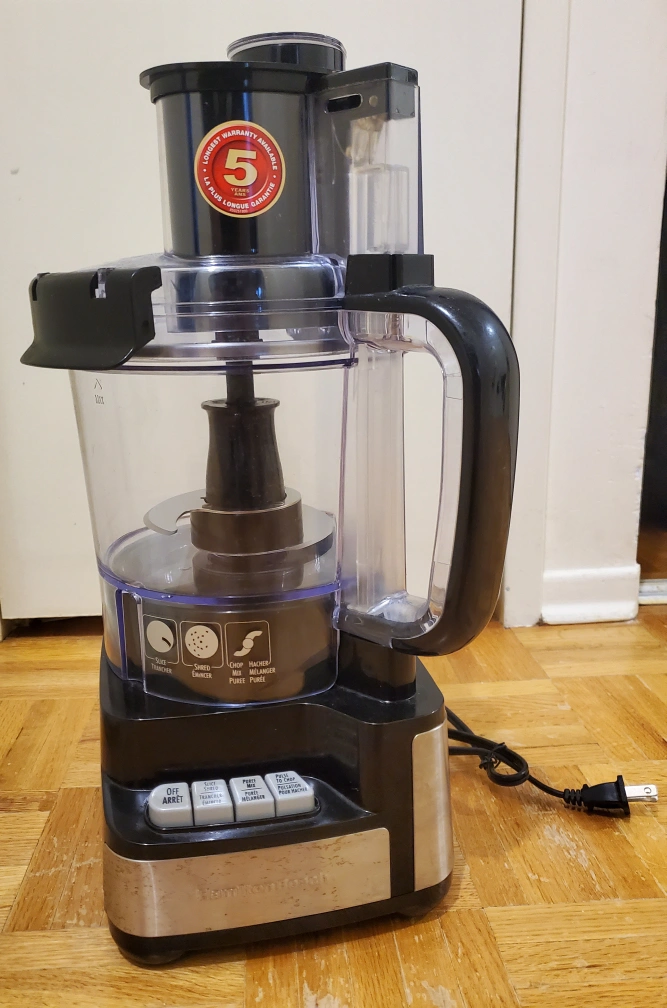 Gently loved Food processor with multiple attachments, including a pusher and a slicing blade. #freecycle
