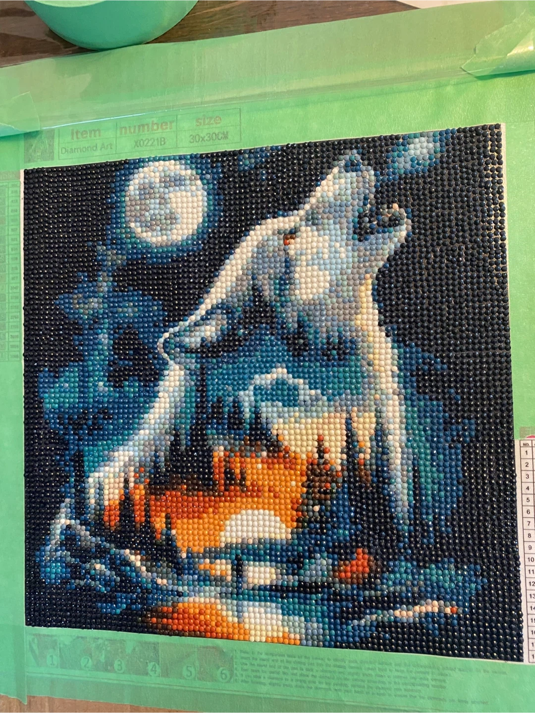 Get creative with this Diamond Art set featuring a howling wolf under the moon! The design is 30x30cm