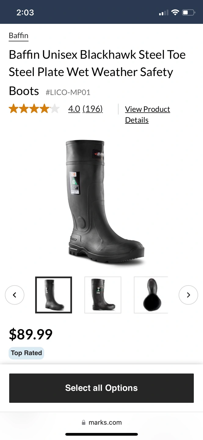 Black rubber boots, steel toe. Excellent condition.used 2 days a little small for me , lost receipt can not exchange paid $89 plus tax $50 firm thanks.size 9.