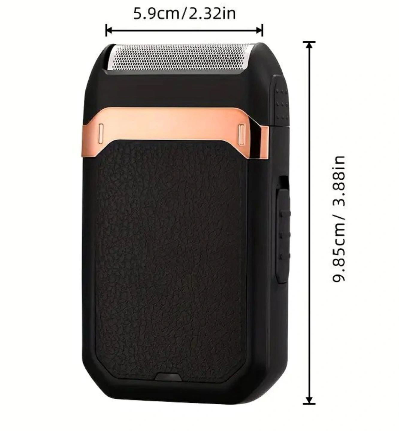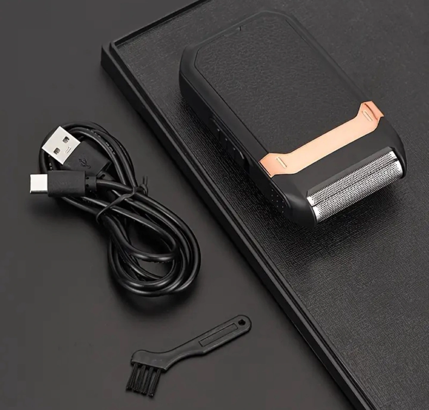 Electric shaver for men. Comes with a charging cable and cleaning brush. Has a removable and washable head.
