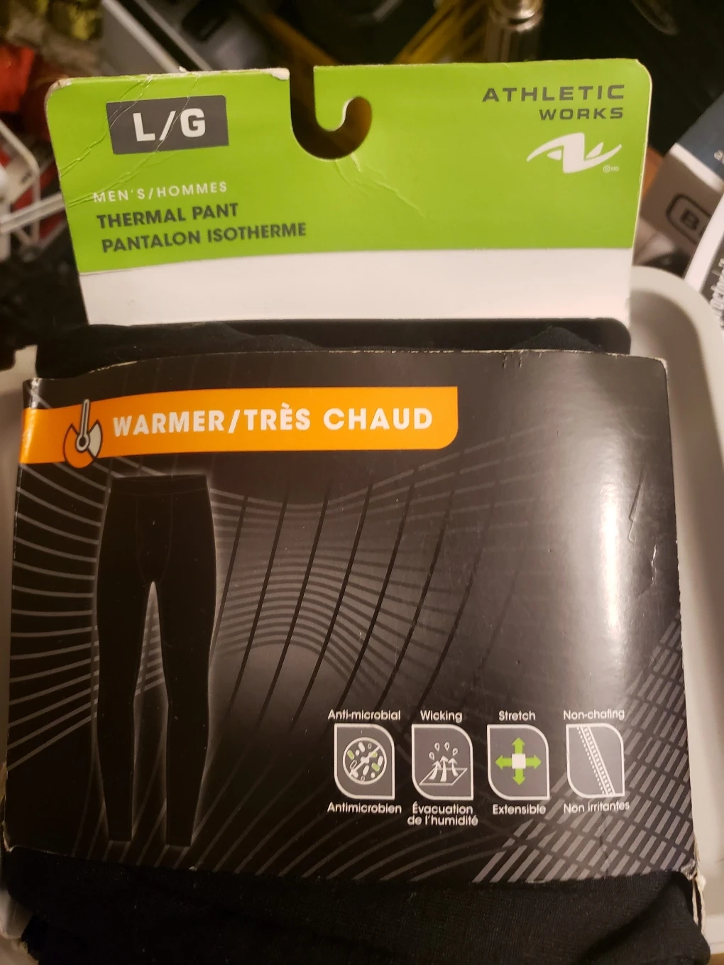 Buy & SellAthletic Works Men's Thermal Pants - Size L/GAthletic Works Men's Thermal Pants - Size L/G$15Black thermal long underwear size L/G. Made with 95% polyester and 5% spandex. Brand new, never worn.ConditionNewSizeLargeBrandAthletic WorksWHERE TO MEETCheck LocationView MapSELLERverifiedOletaKillarney28223 reviews0 chats·2 favorites·9 viewsSEND CHAT TO SELLERHi Oleta! I’m interested in your listing.Hi Oleta! I’m interested in your listing.Get the Karrot app to chatSign In to chat