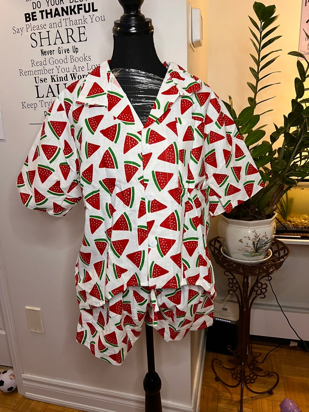 Women's Summer Pajama Set, Watermelon, Orange, or Blue Pattern