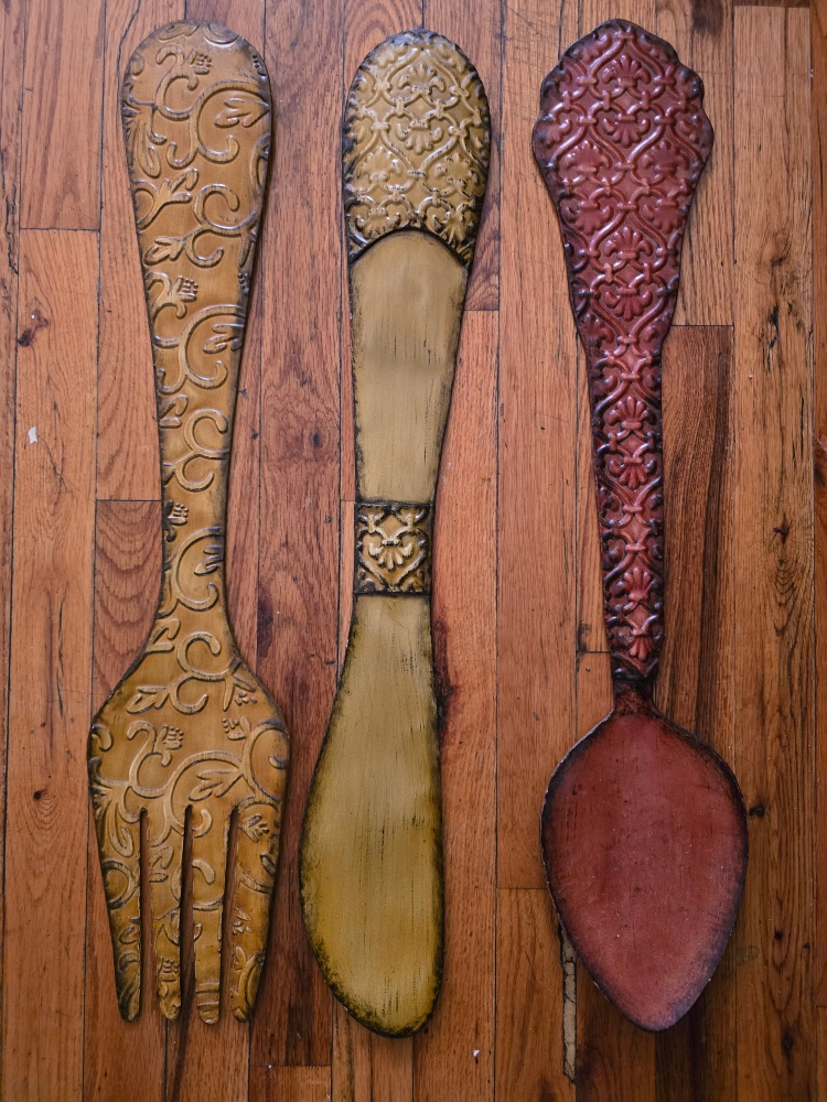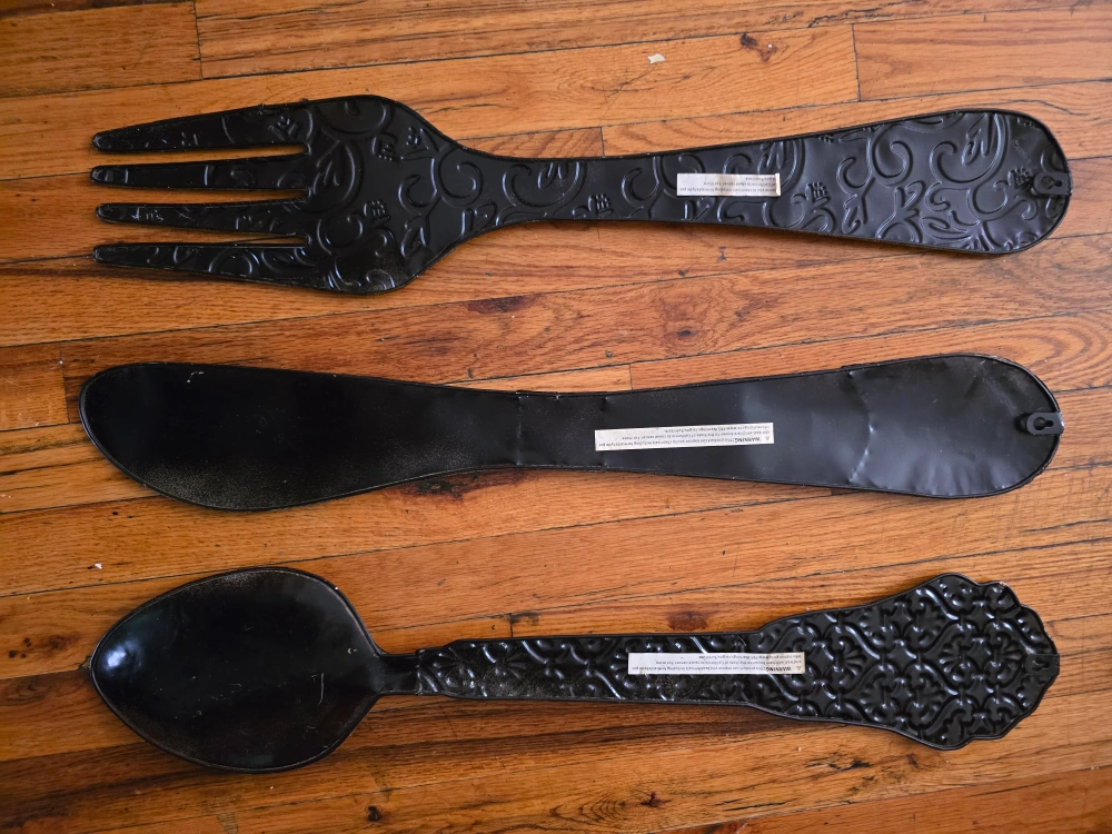 1000+Set of three metal wall decor utensils. Includes a fork, spoon, and knife. #Freecycle π₯ took these saving it from the landfill from my neighbor throwing them out in hopes to find a new home for them πππ