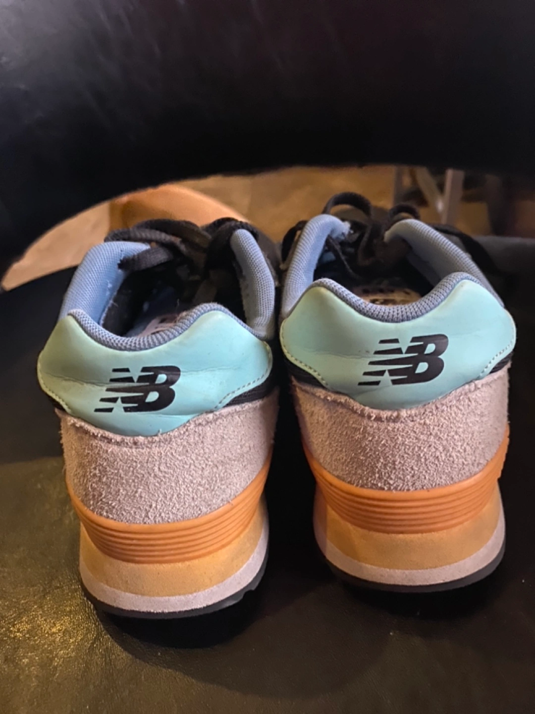 407New Balance 575 sneakers. Black, grey and blue. Lace-up closure.
