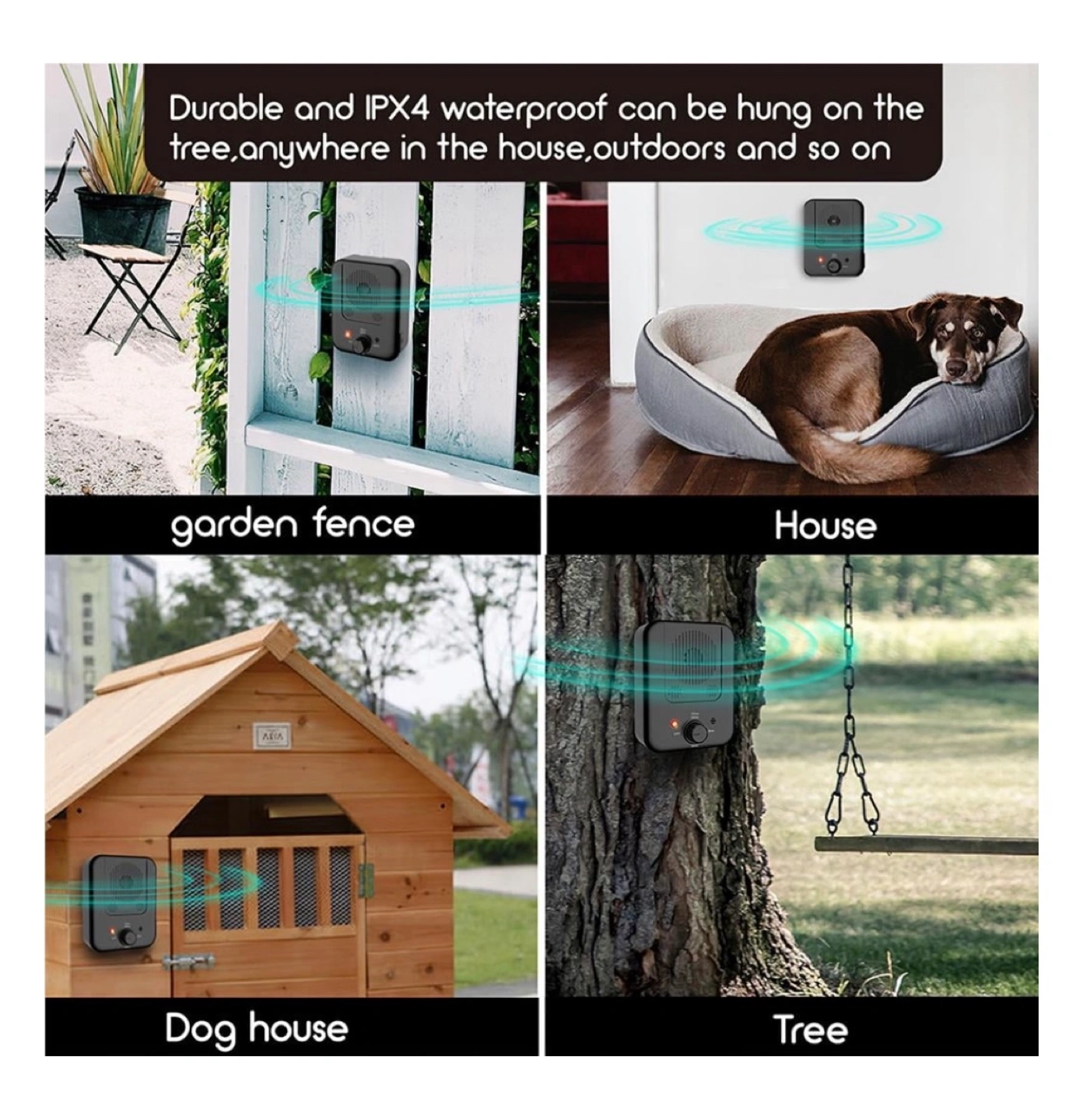 Description: 50 feet: The anti-barking device can automatically detect barking sounds from dogs 50 feet away. High volume: The barking control device will automatically emit a high-pitched sound that only dogs can hear. After the dog stops barking, the ultrasonic barking control will automatically stop emitting ultrasonic waves. Safety: Ultrasound is harmless to pets and completely inaudible to the human ear, so this device can be used safely. Installation: It can be hung on trees, indoor, outdoor walls, or fences to prevent dogs from barking (within the range). When excessive barking is detected, the microphone will respond to the barking and activate the component. Suitable for: Suitable for dogs aged 6 months to 8 years old. Specification: Type: Bark control device Quantity: 1pc Material: ABS Color: Black Waterproof: IPX4 Power Supply: Built-in battery Size:Approx.110*85*48.5mm/4.3*3.3*1.9inch(L*W*H) Weight:190g/6.7oz Package Includes: 1 Piece Bark Control Device. 1 Piece Package Box. Package Including .