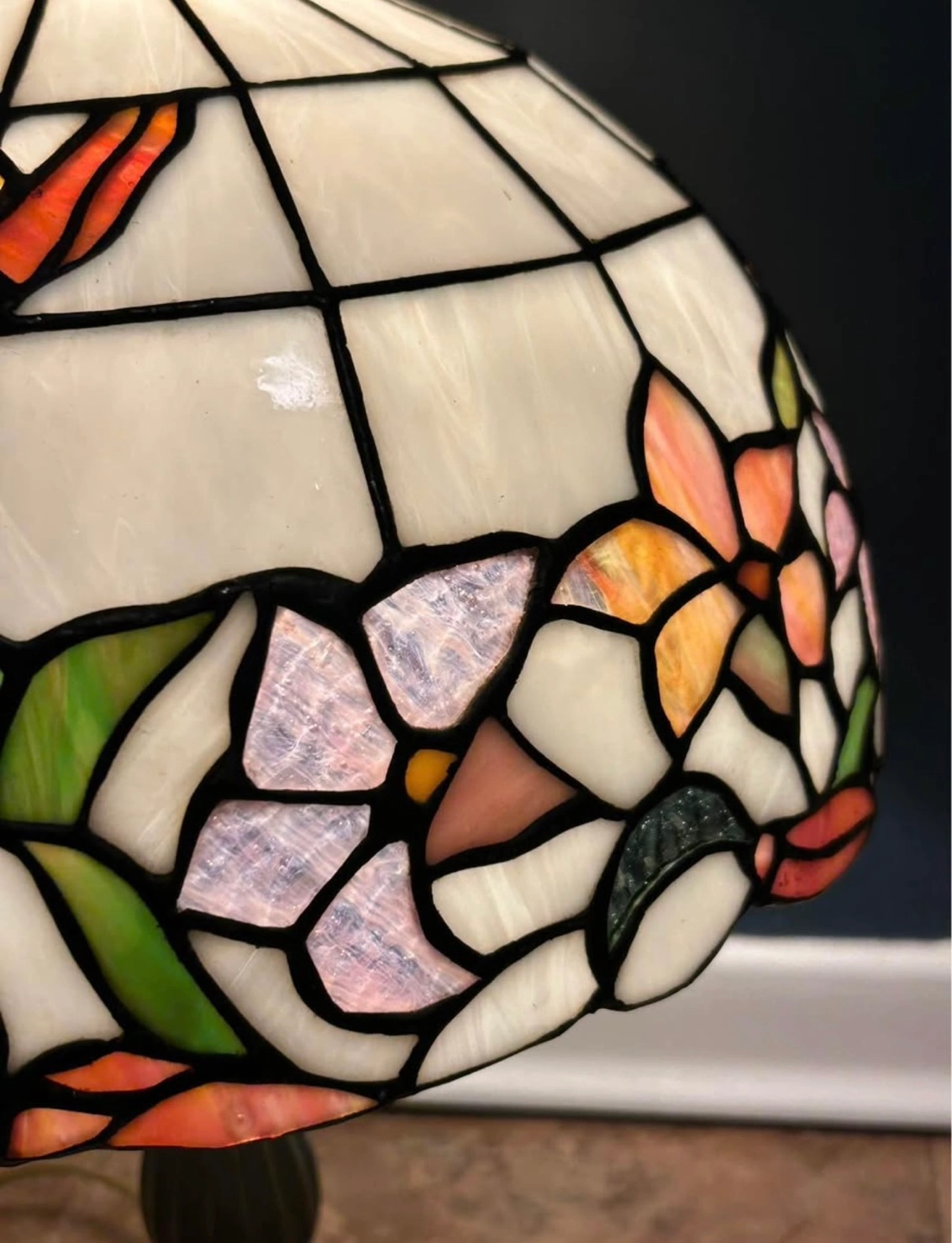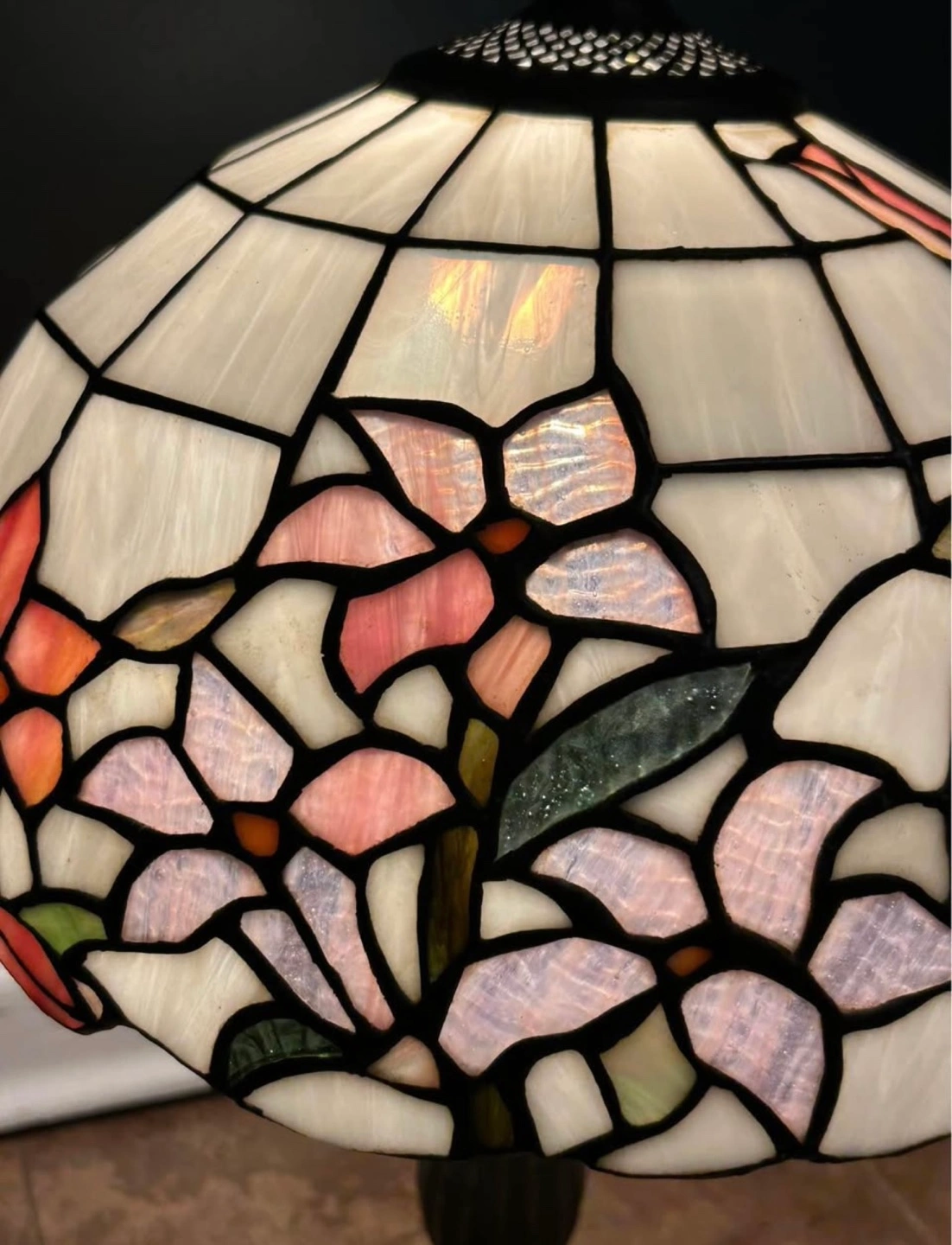 Large Tiffany Style Table Lamp Red Pink Stained Glass Roses