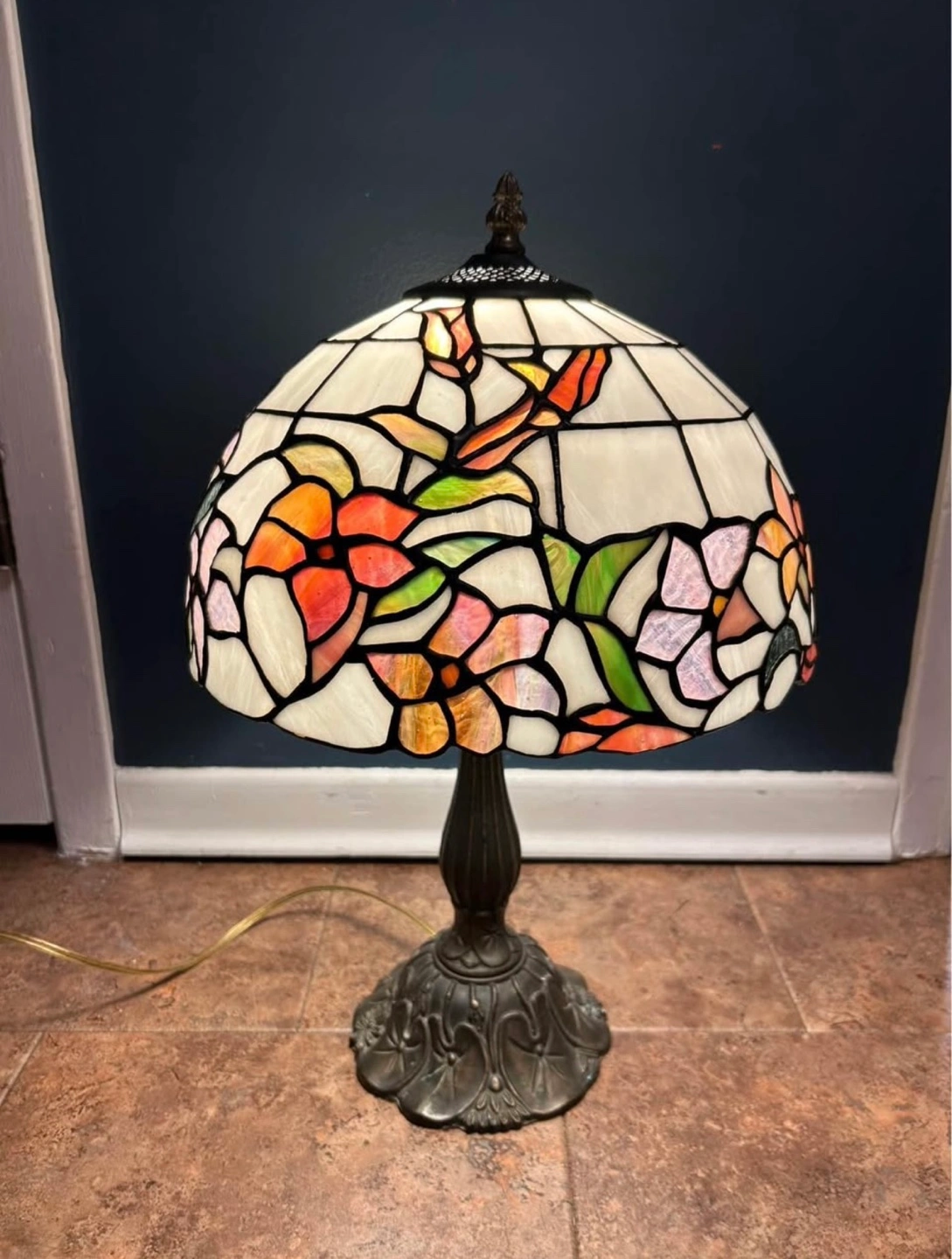 Large Tiffany Style Table Lamp Red Pink Stained Glass Rose Flowers LED Bulb 12"W19"H. Price is Firm