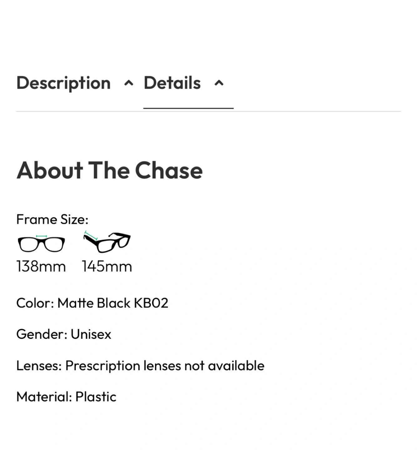 - Matte black plastic frames
