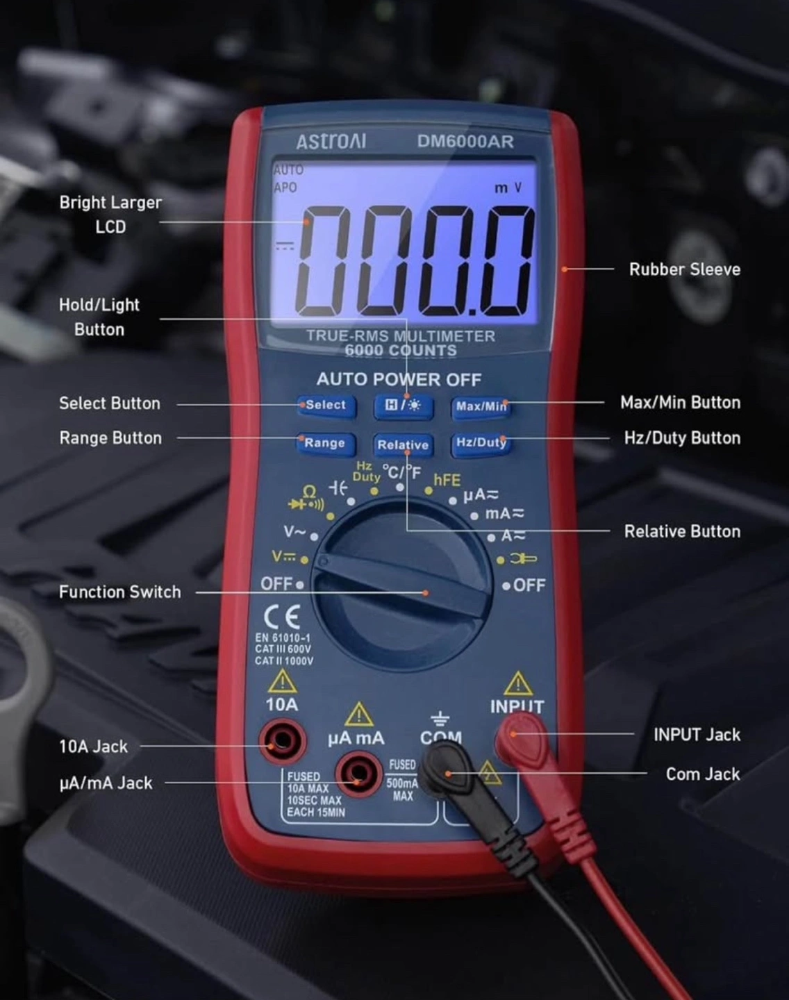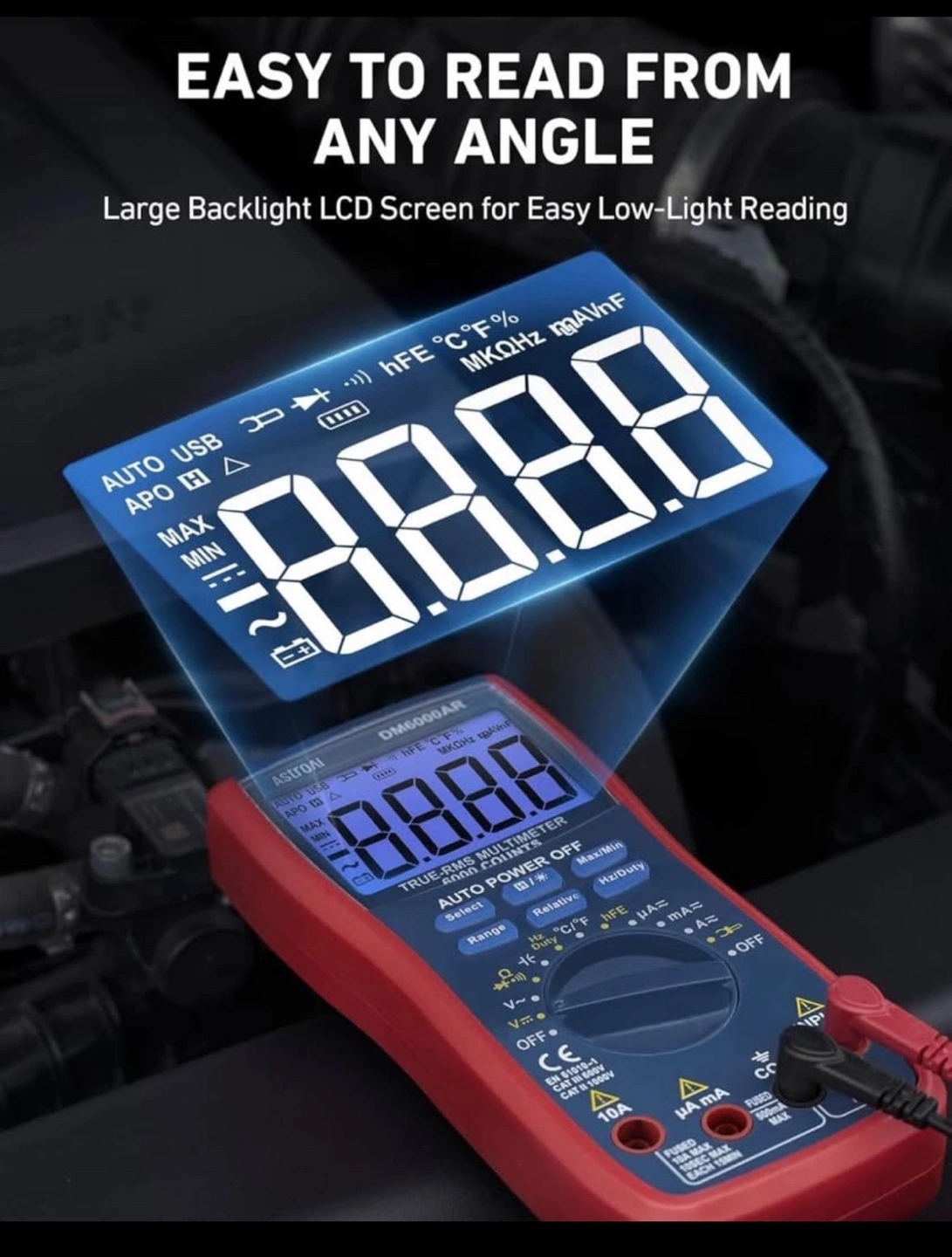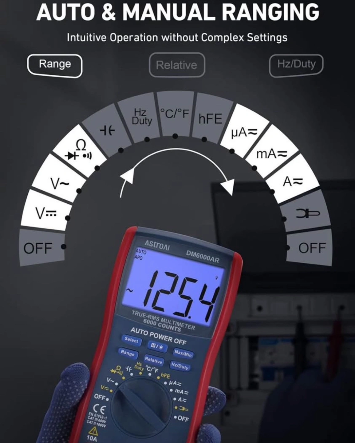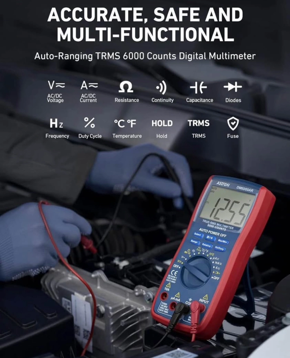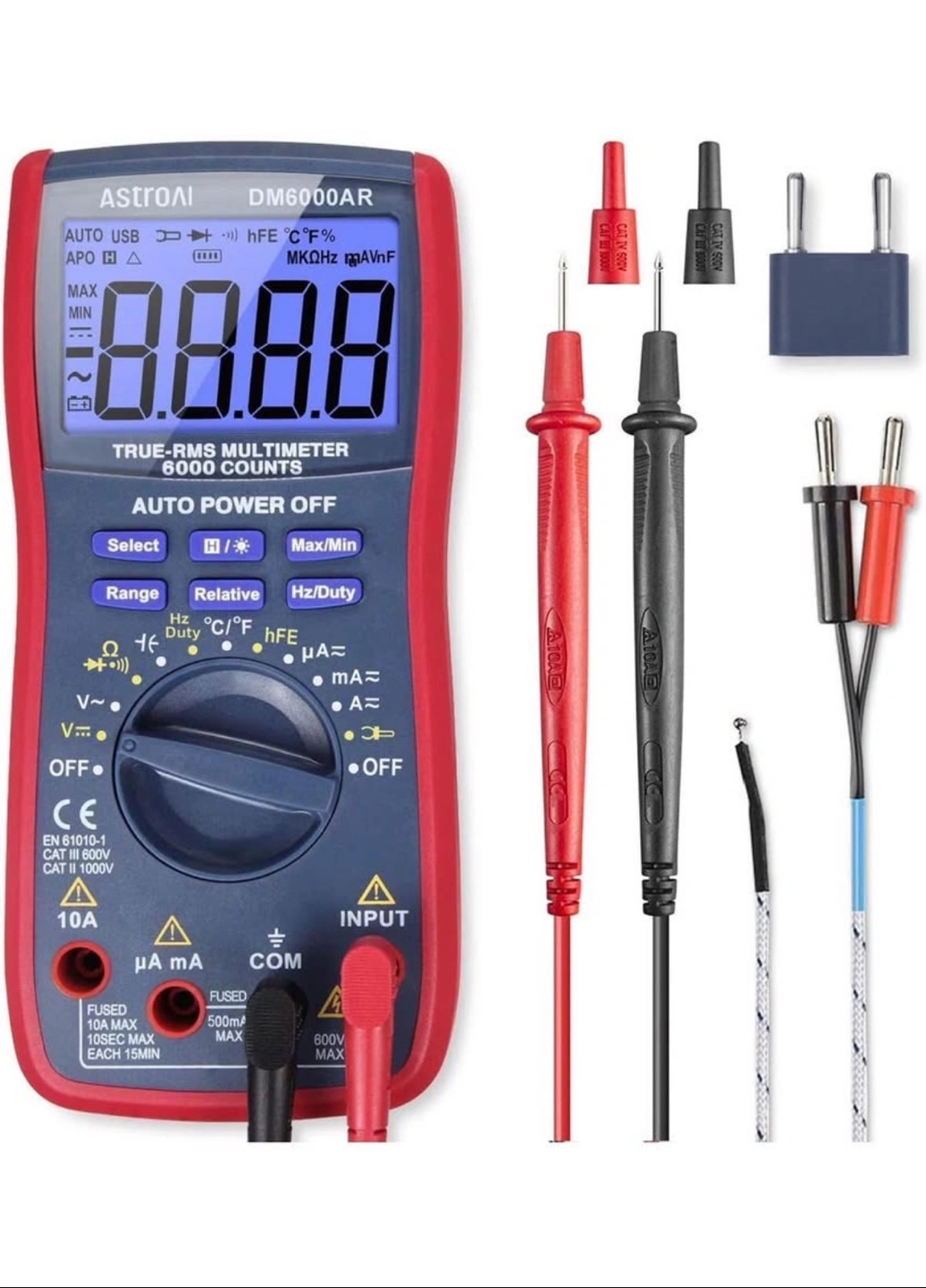 AstroAI Digital Multimeter 6000, Auto Range Multimeter Tester with Volt Amp Ohm, Multi Meter Measures Voltage, Current, Resistance, Continuity, Capacitance, Diode and Temperature