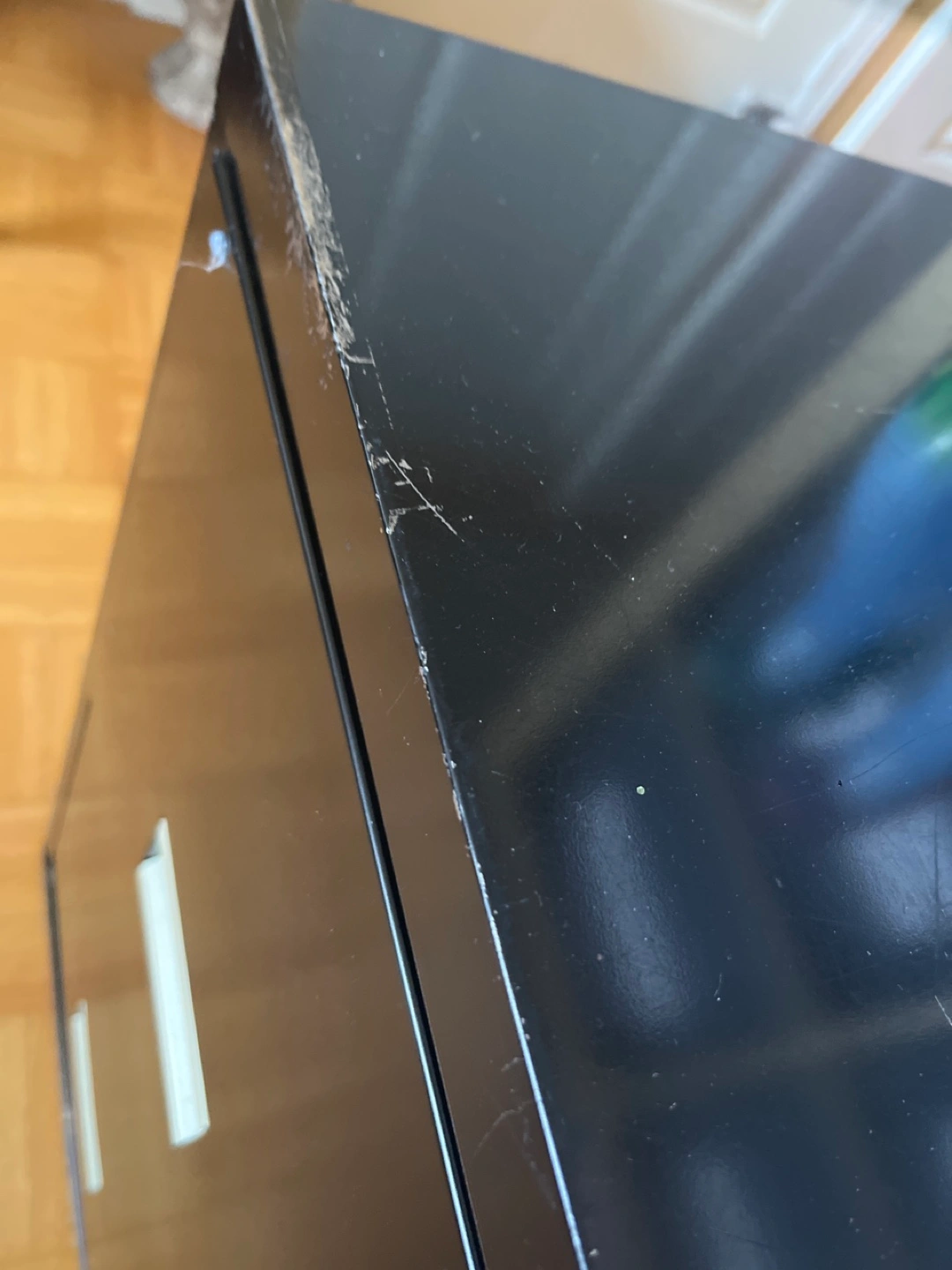 This is in great shape. I had it under my desk. Couple scratches on the top and one dent on the top and on the bottom filing cabinet, I had to repair the bracket for the file folders, but they work just fine.