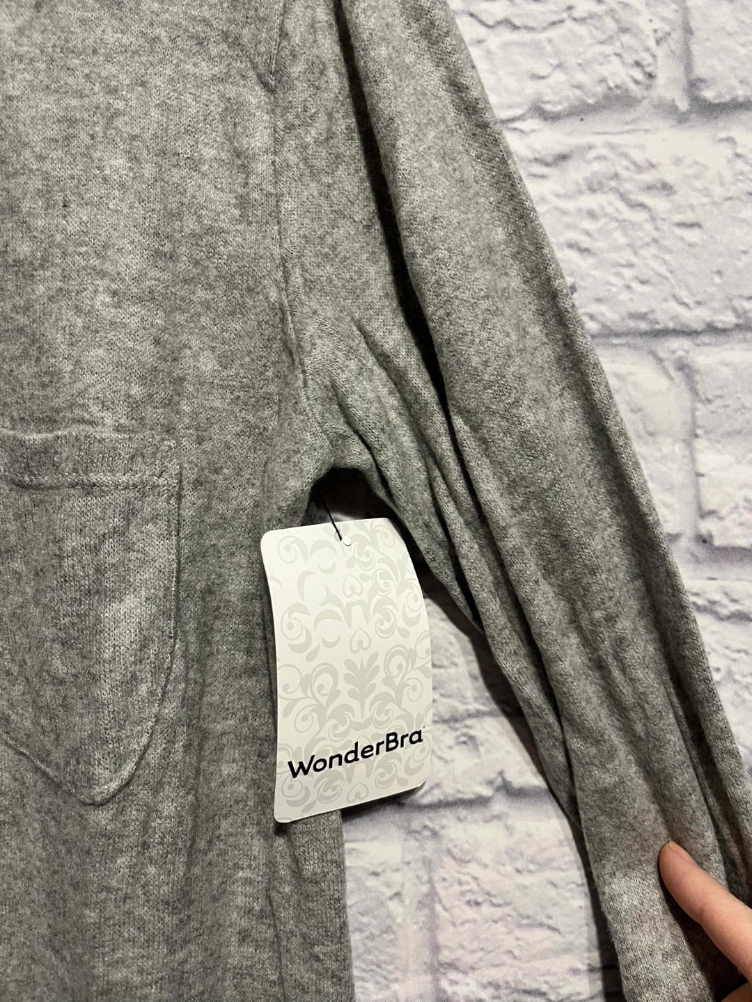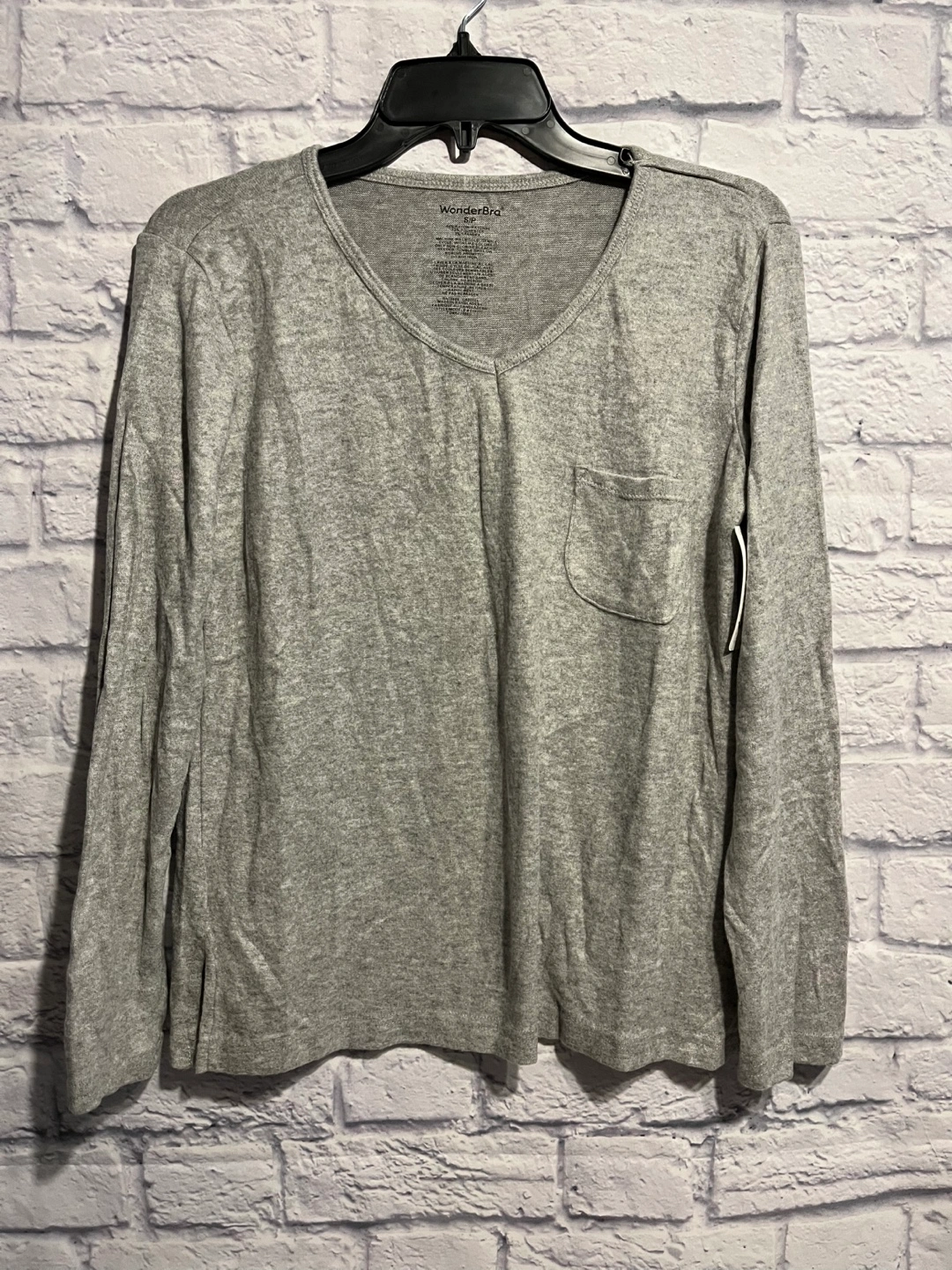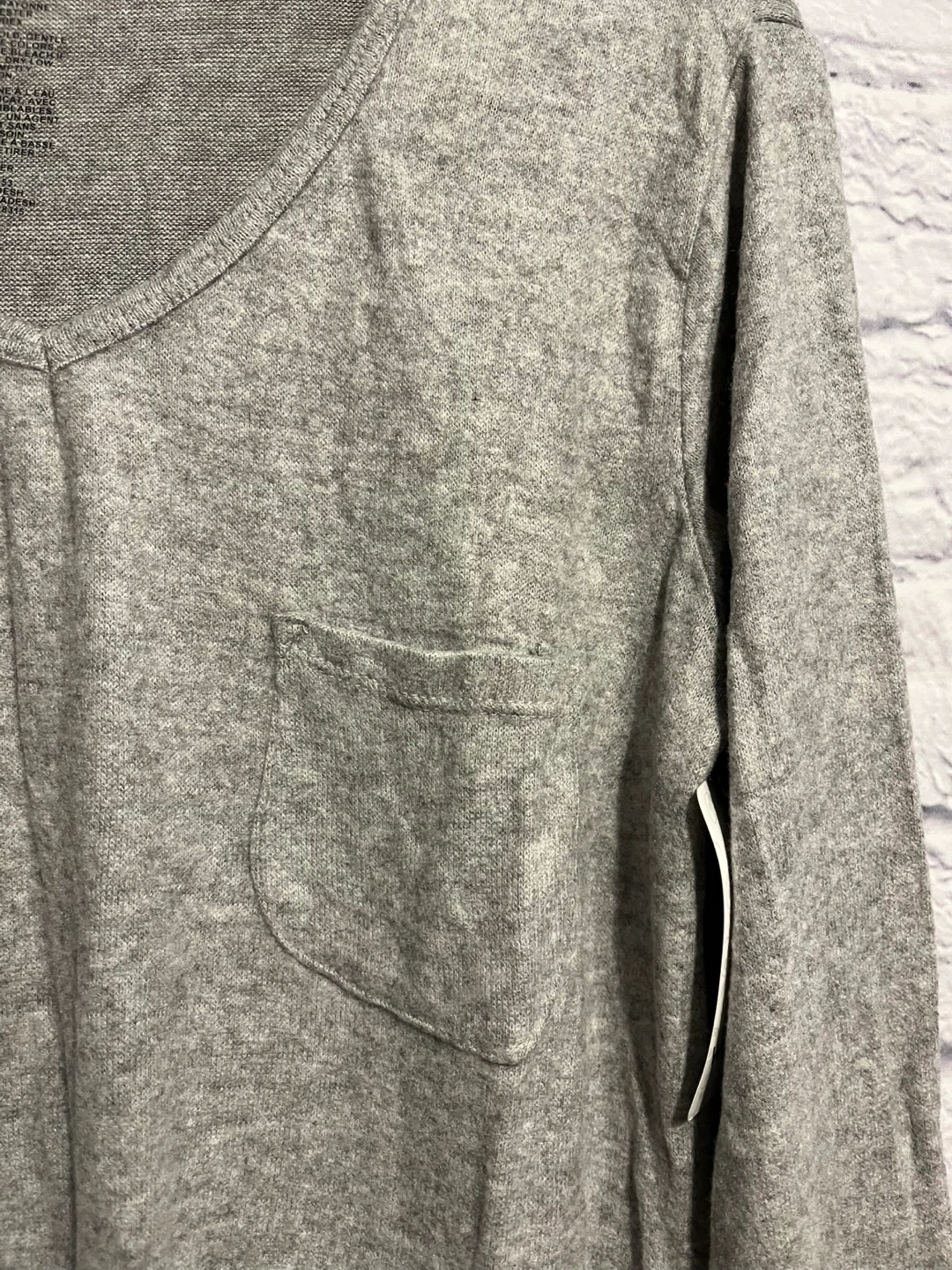 Grey long sleeve shirt with a V-neck and a pocket. Size S/P, new with tag. Pick up only