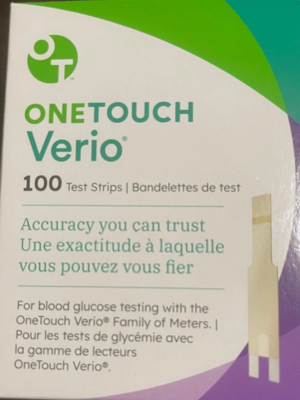 100 test strips for blood glucose testing with the OneTouch Verio Family of Meters.