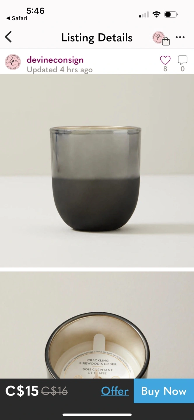 Poshmark photos are actually not mine but had a better description. I couldn’t find the original info for the candle.