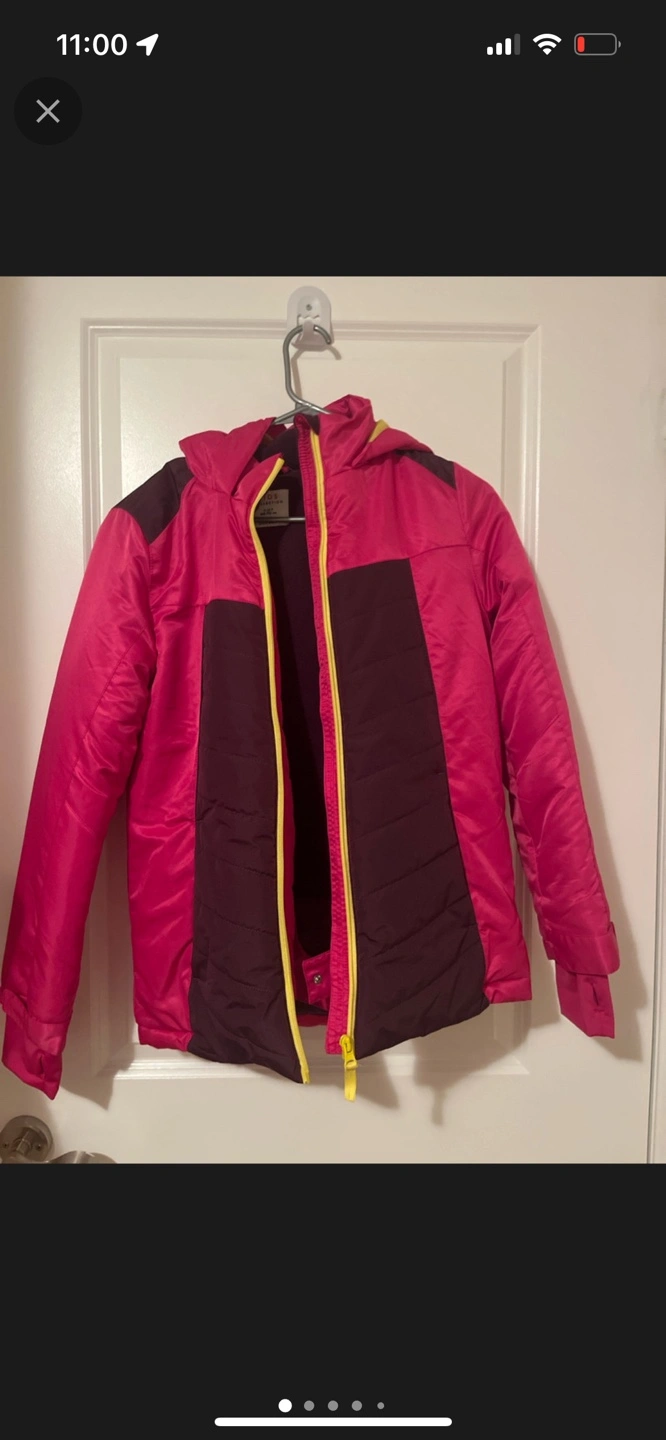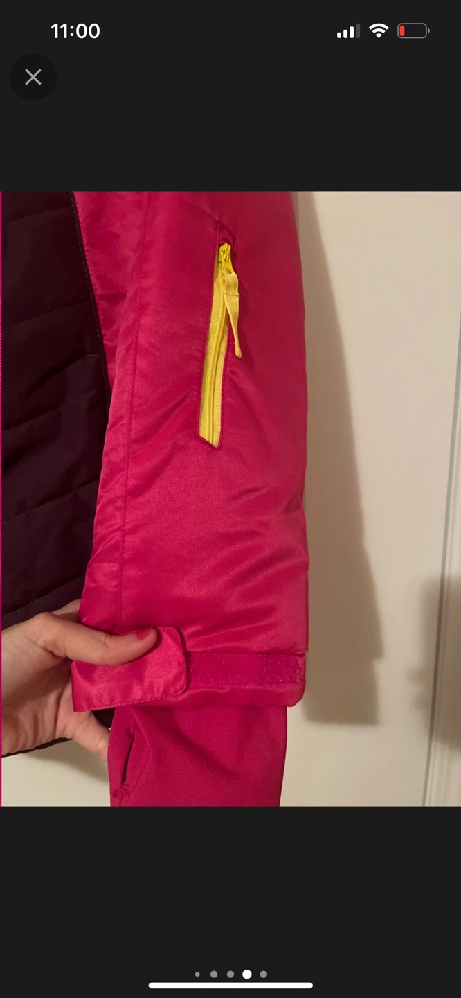 Pink and purple winter jacket with yellow zipper details. Size 11-12 years. Super duper warm and comfortable