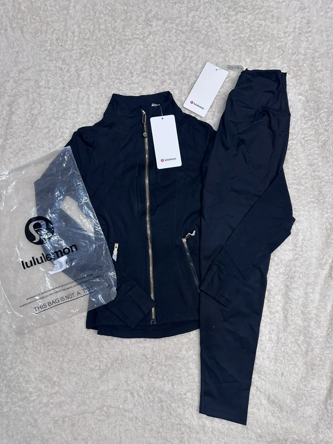 Selling a brand new Lululemon set! Includes a Define Jacket and a pair of Align leggings, both in size 2. The fabric is soft and comfortable, perfect for yoga and daily life. Originally bought for $98 each! Selling because it was wrong size never worn