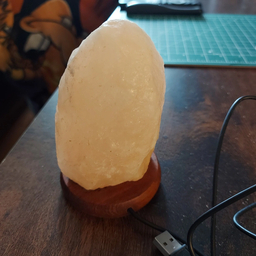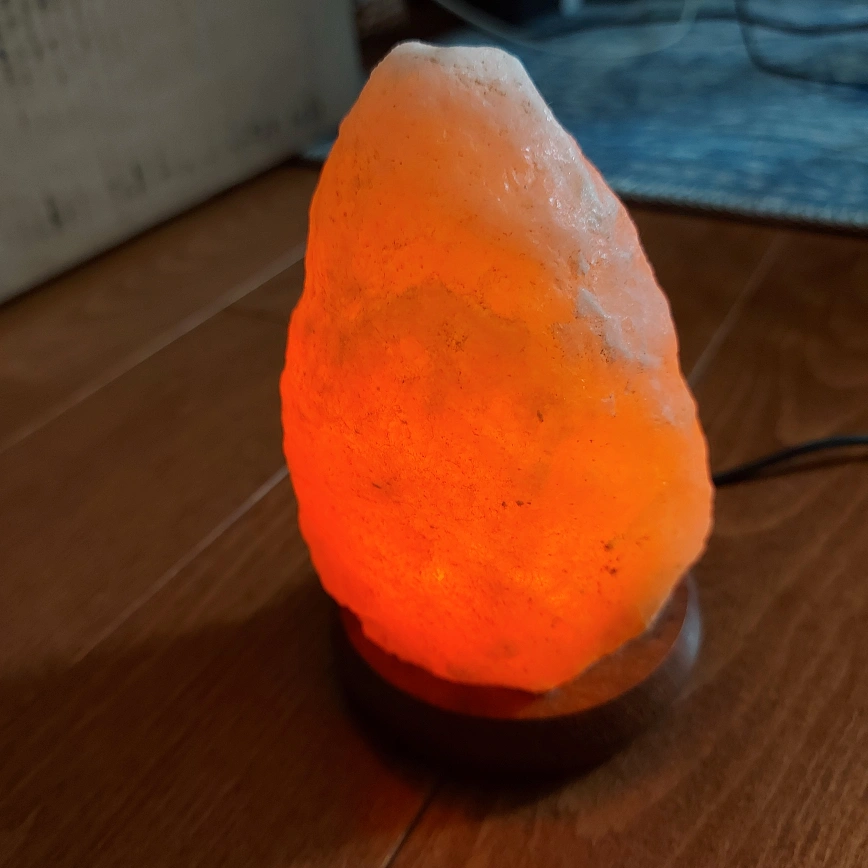 1000+Salt lamp with wooden base and USB cord. Emits a warm orange glow. I've had it for years and it's time for it to go. Pick at at Pape station.