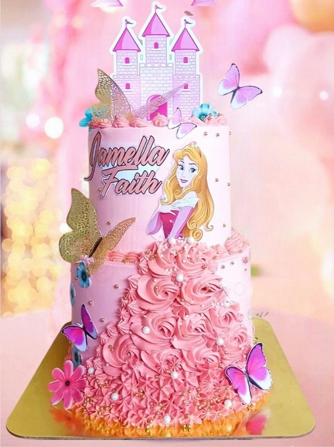 Buy & SellSleeping Beauty Princess CakeSleeping Beauty Princess Cake$130One tier chocolate cake and one tier strawberry cake with frosting, piping designs, sprinkles and cut out decorations. MADE FRESHWHERE TO MEETCheck LocationView MapSELLERBakedbyCLeitrim292 reviews0 chats·1 favorites·47 views