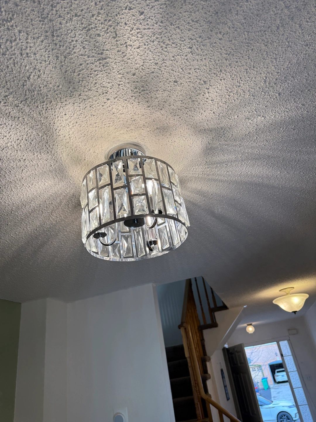 Two-light chandelier with crystal accents. Comes with all hardware. In good condition. Can be used in living room, dining room or bedroom. 15 each or 25 for both.