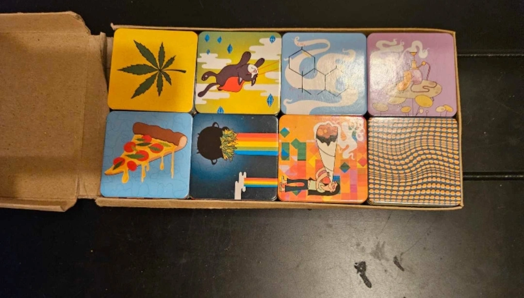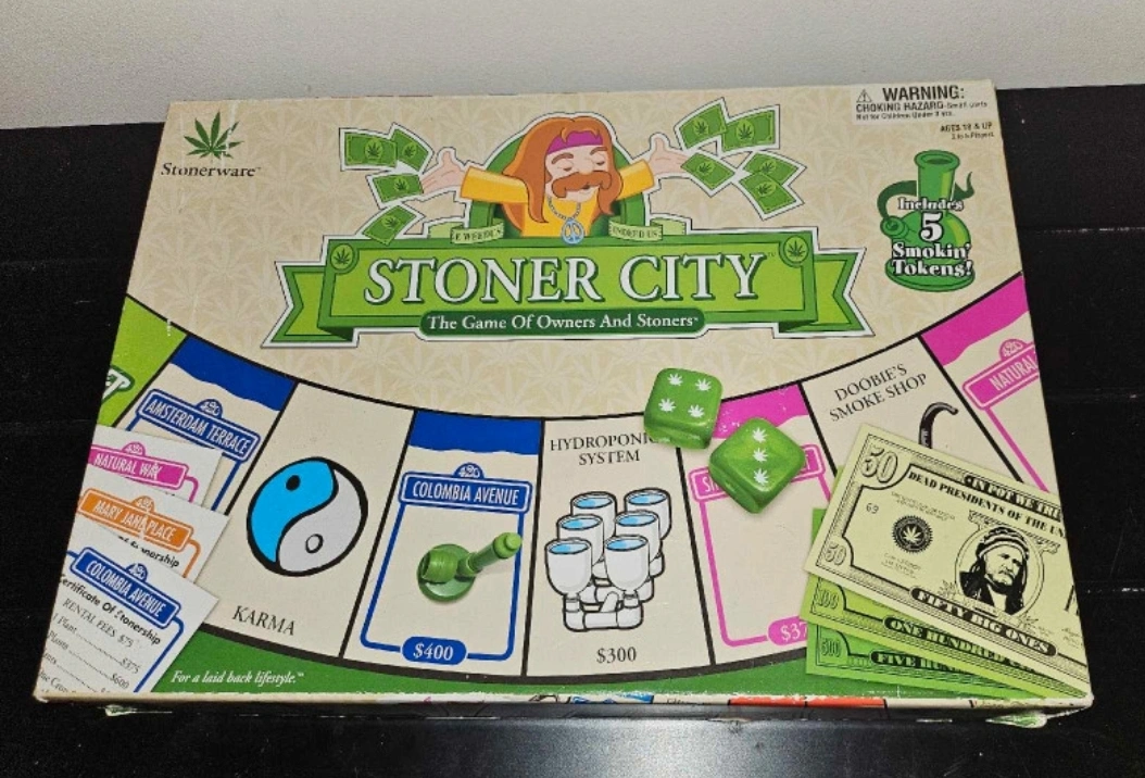 Two 420 friendly board games circa 2005 Stoner City board game, includes game board, cards, money, and playing pieces. Mary Jane Matching game, includes 72 cards (36 pairs). Both games are in used condition, however, all pieces are present. $20 for both.
