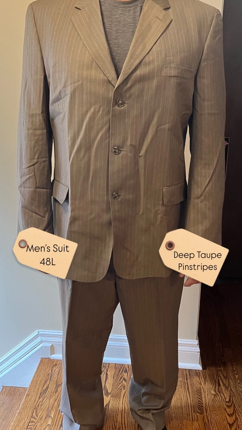 Men’s Dark Taupe Pinstriped Suit by Bergamo