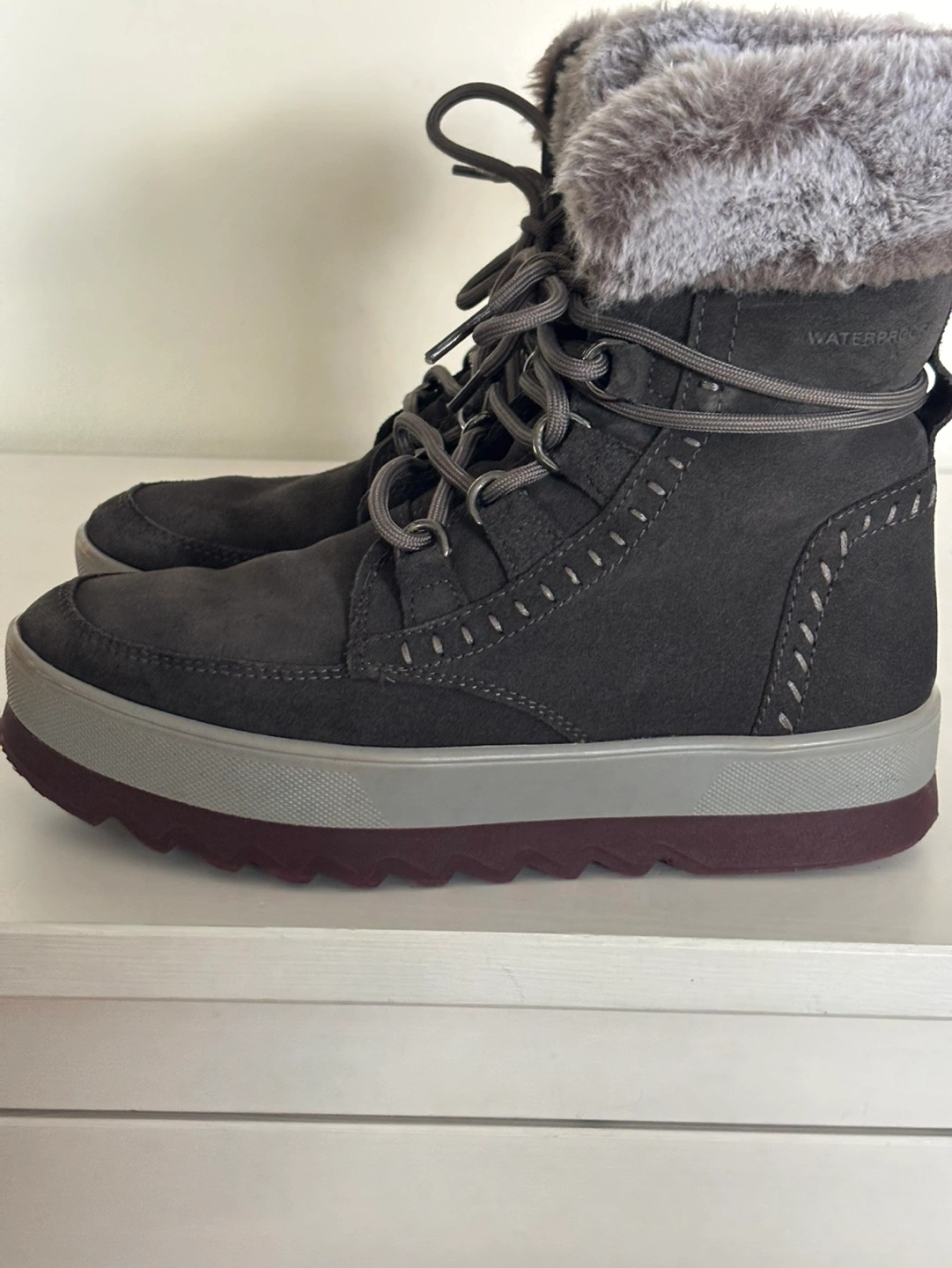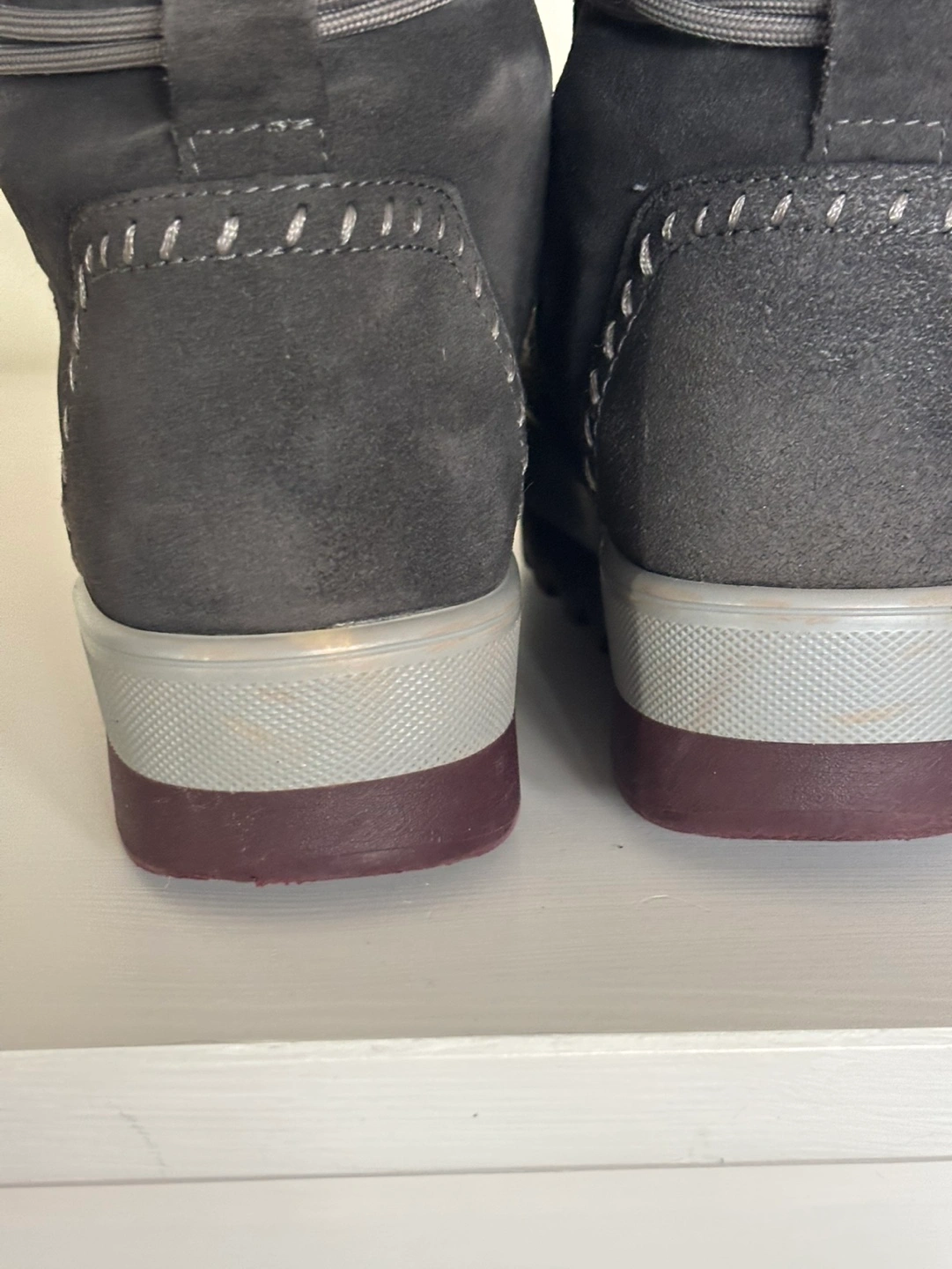 Color: Pewter Suede/burgundy sole