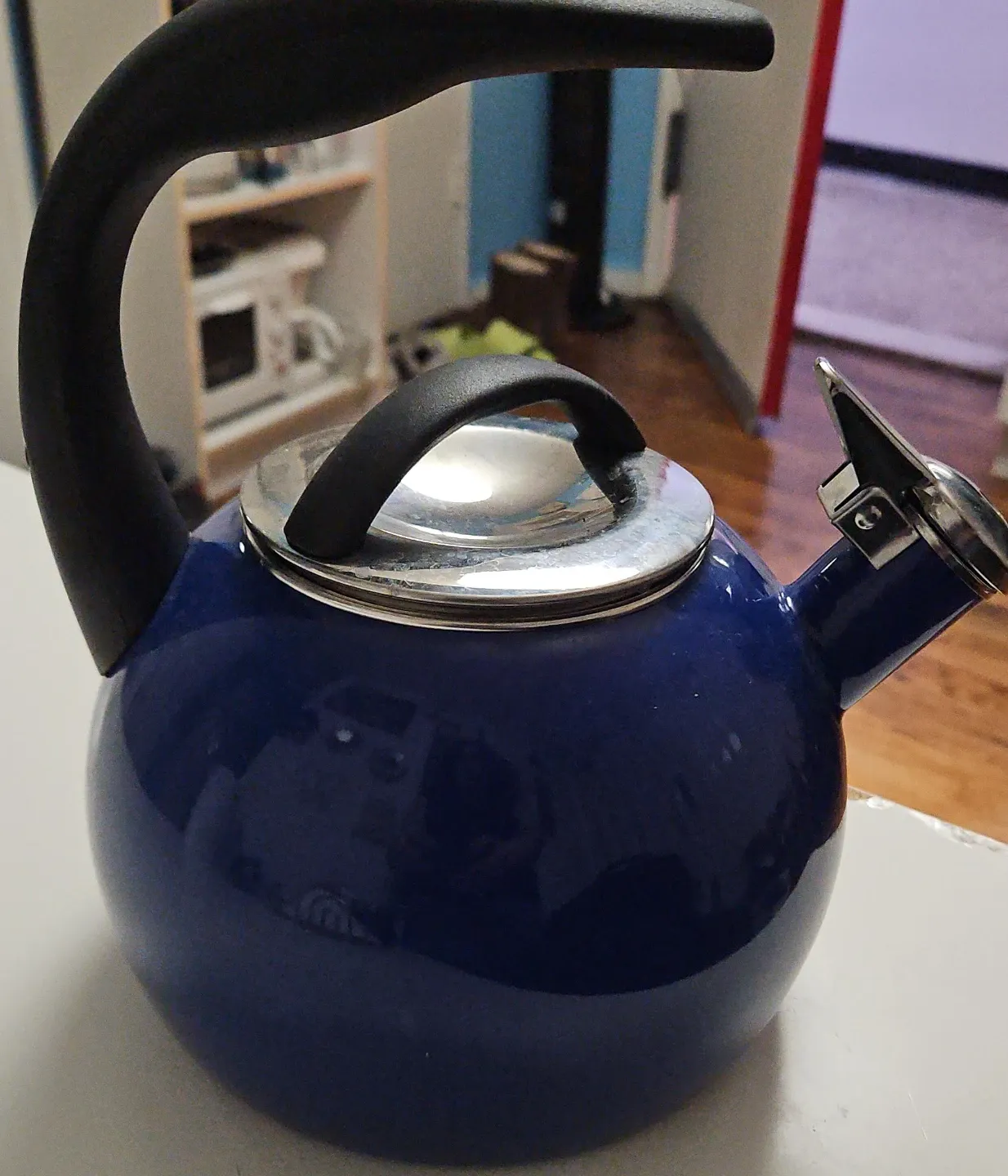 Buy & SellBlue Stovetop KettleBlue Stovetop Kettle$13Blue stovetop kettle with a black handle. Features a whistling spout for hot water. Made of metal with a glossy enamel finish.WHERE TO MEETNYC Health + Hospitals/ElmhurstView MapSELLERElizabethJackson Heights614 reviews1 chats·1 favorites·22 viewsSEND CHAT TO SELLERHi Elizabeth! I’m interested in your listing.Hi Elizabeth! I’m interested in your listing.Get the Karrot app to chatSign In to chat
