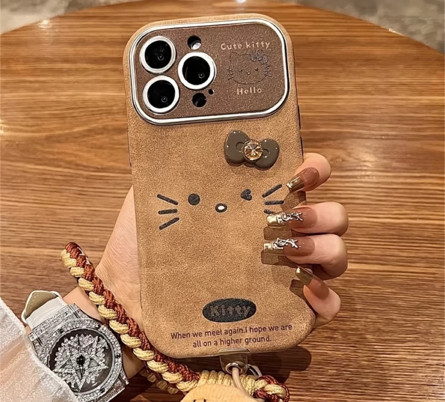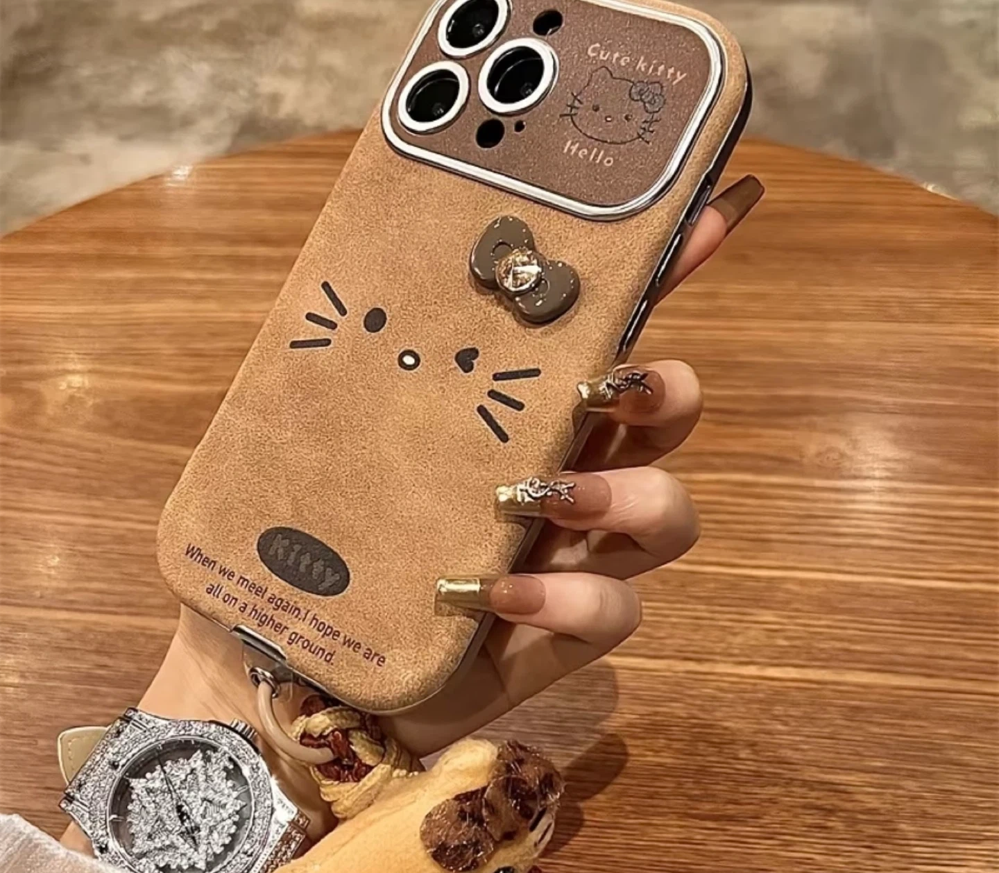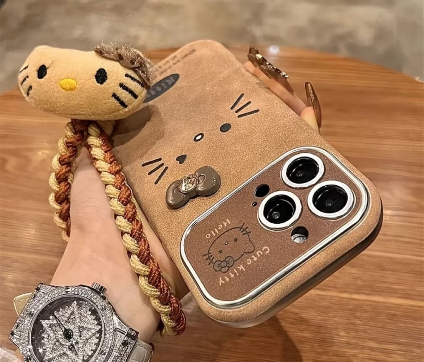 Selling a cute Hello Kitty iPhone case! It's in great condition and has a lovely brown colour with a cute bow detail. Perfect for any Hello Kitty fan!