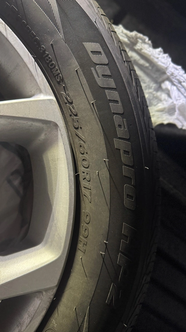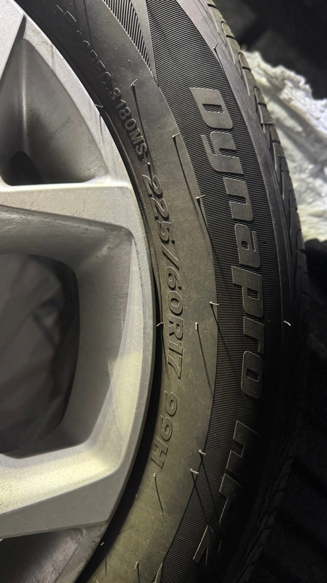 Hankook Dynapro HT tires mounted on original rims. Size: 225/60R17 99H. These tires and rims are in used condition, used for less than 6 months. Suitable for cars, all-season use.