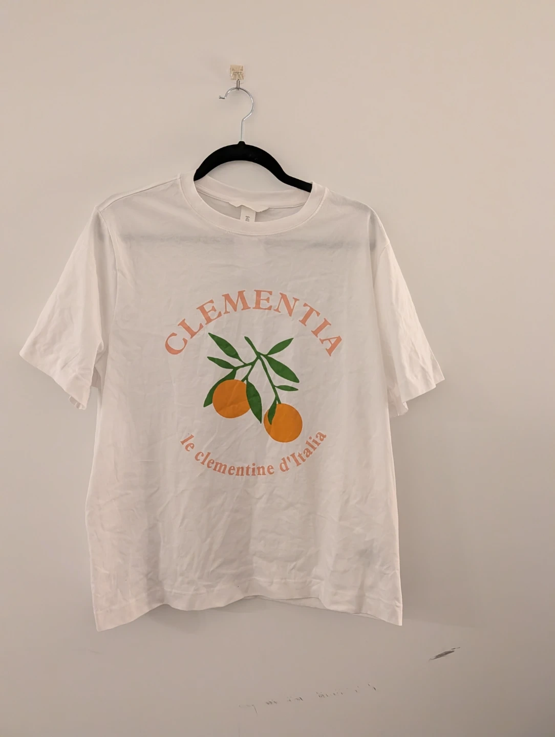 Buy & SellWhite Clementine d'Italia T-ShirtWhite Clementine d'Italia T-Shirt$9White t-shirt with a clemtine graphic. Cotton material. Too late to return to store OBOSizeLargeWHERE TO MEET1435 Celebration Dr LobbyView MapSELLERLarissaUniversal City Condos100 reviews0 chats·0 favorites·4 viewsSEND CHAT TO SELLERHi Larissa! I’m interested in your listing.Hi Larissa! I’m interested in your listing.Get the Karrot app to chatSign In to chat