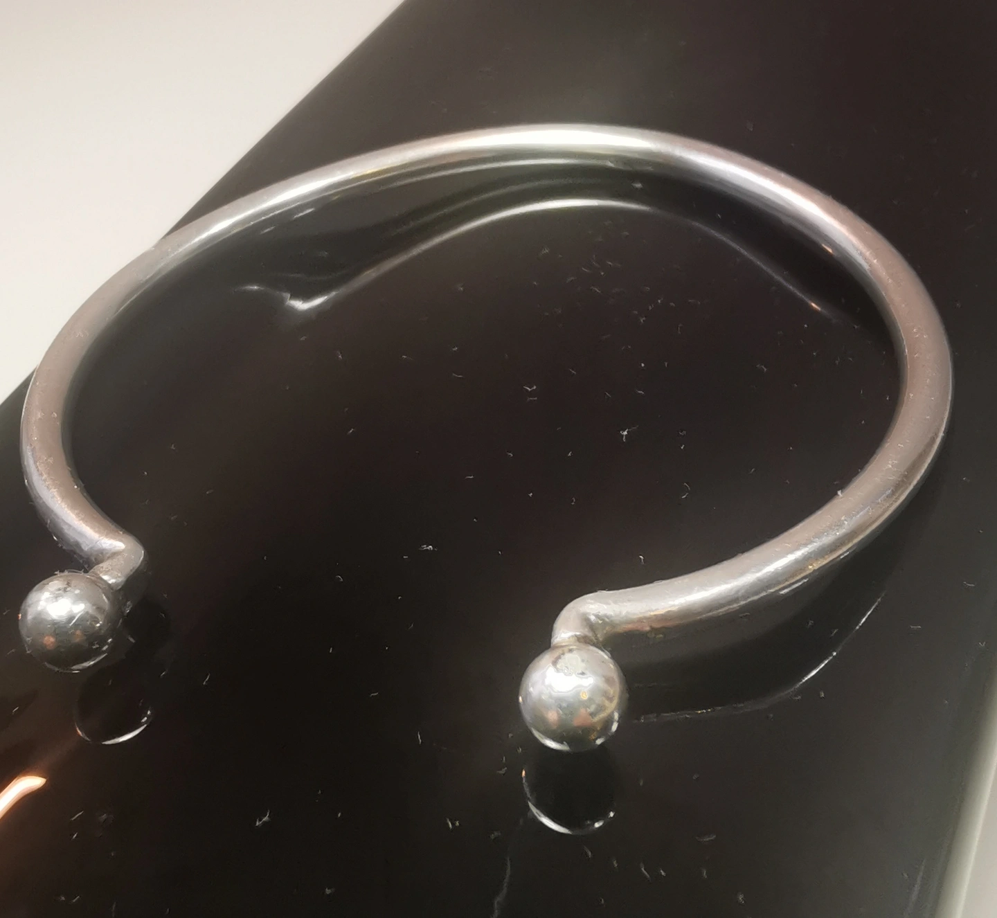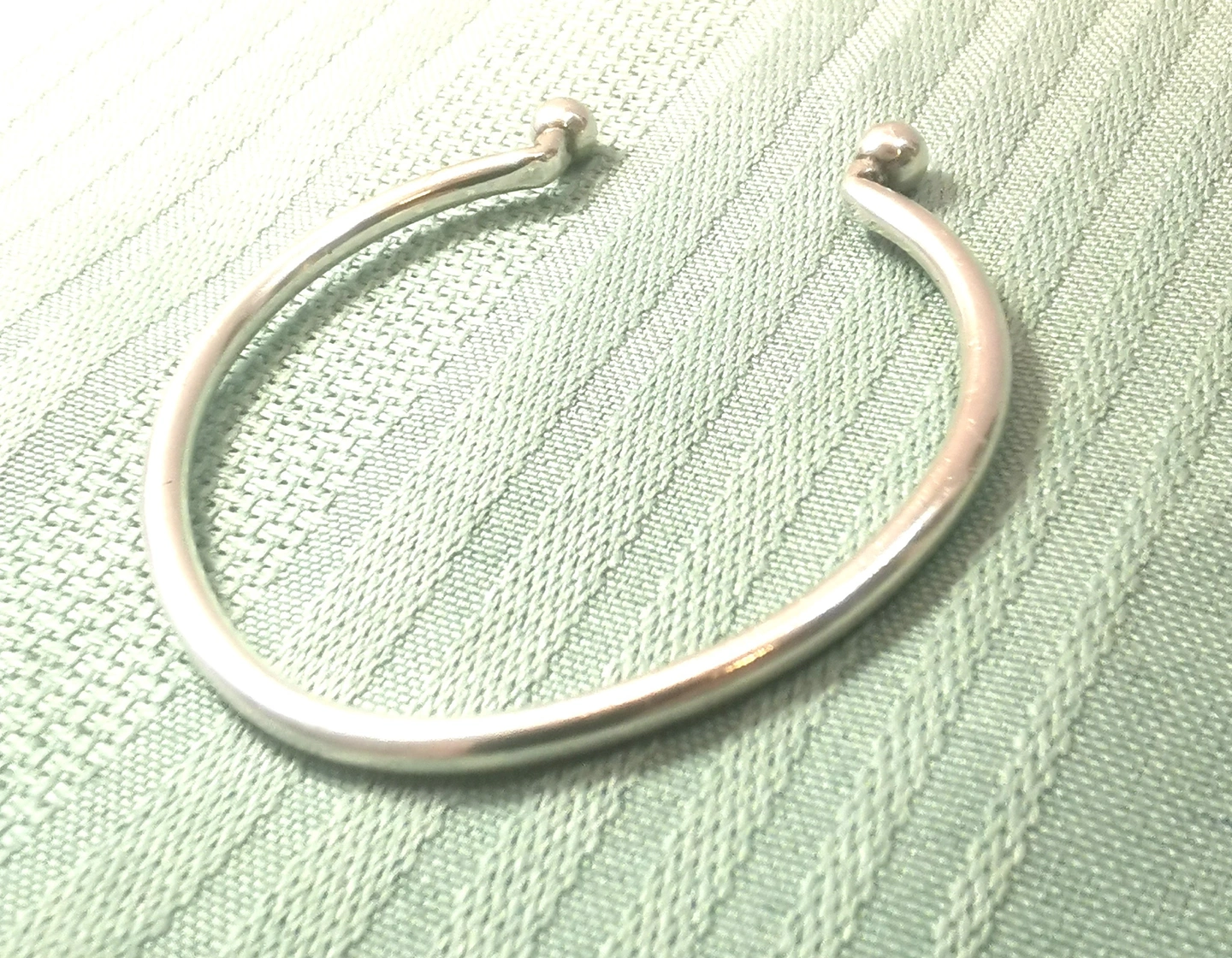 925 Sterling Silver Torque Bangle Bracelet Petite 52mm Ball Ends