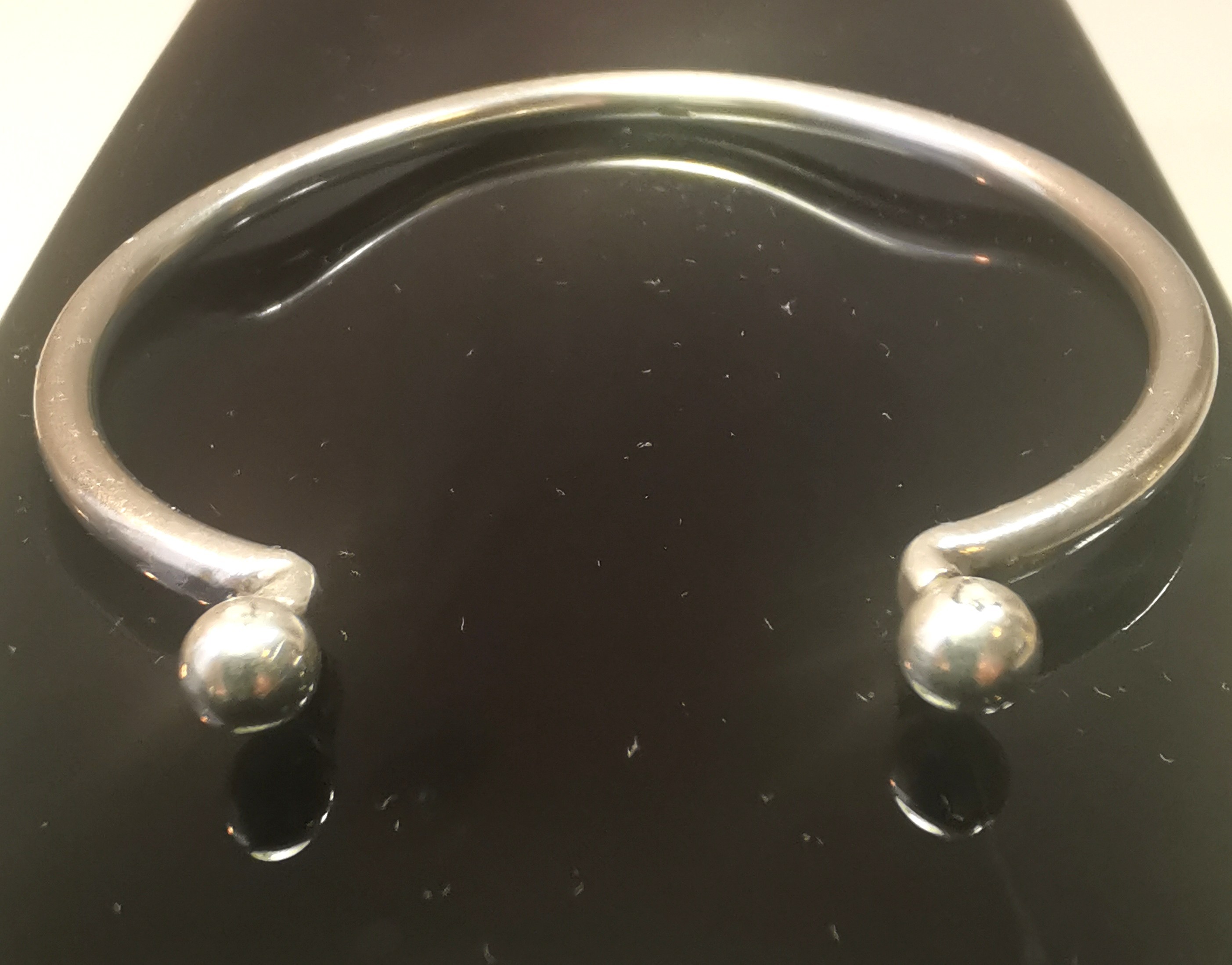 925 Sterling Silver Torque Bangle Bracelet Petite 52mm Ball Ends