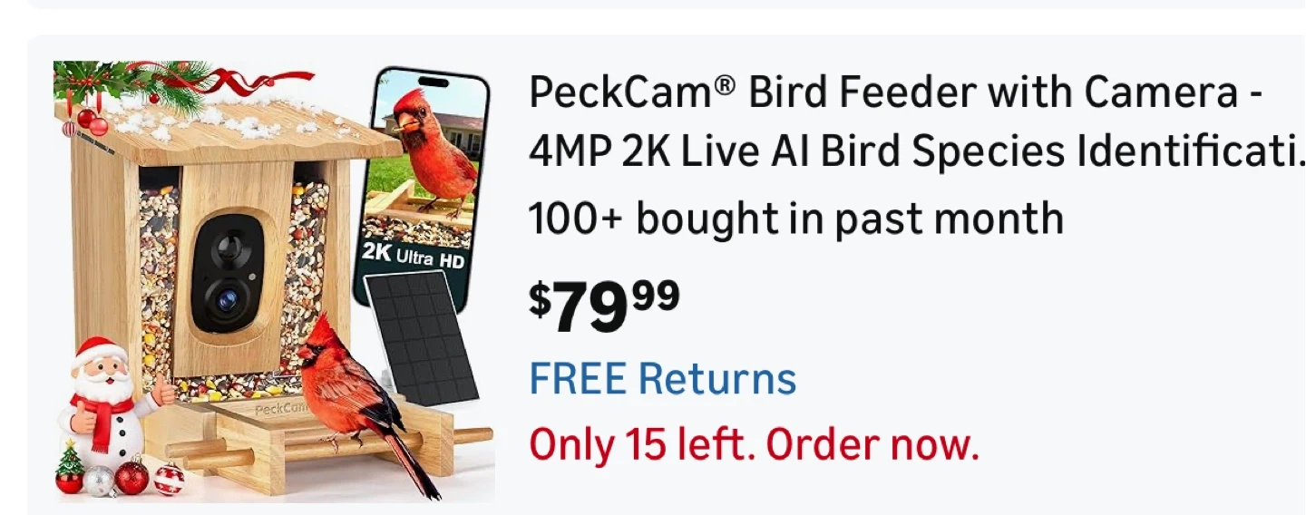 PeckCam Bird Feeder Camera with 2K QHD Resol