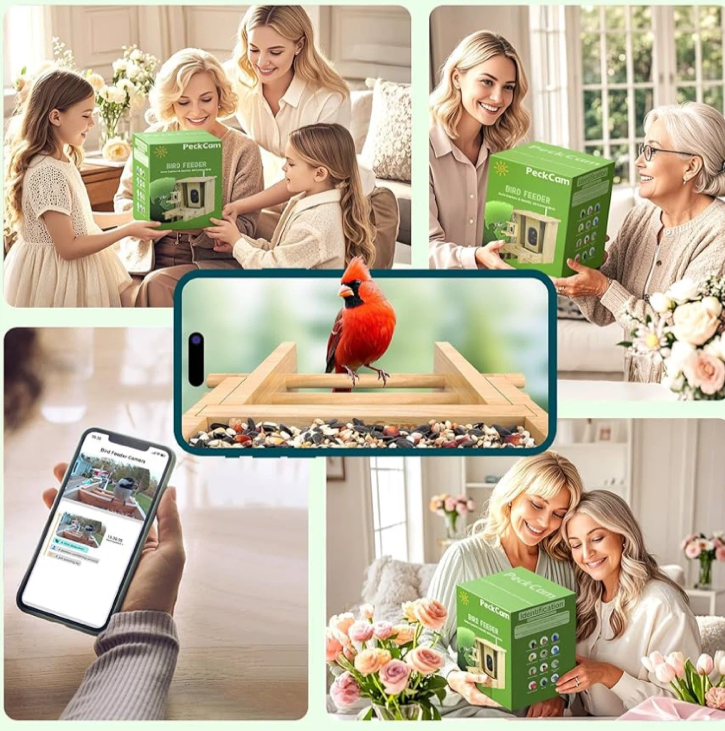 PeckCam® Bird Feeder with Camera - 4MP 2K Live AI Bird Species Identification Instant Arrival Alerts - Smart Cameras Birds Feeders Solar Powered Birdwatching Gift for Birdlover Mom Dad, 2.4GHz WiFi
