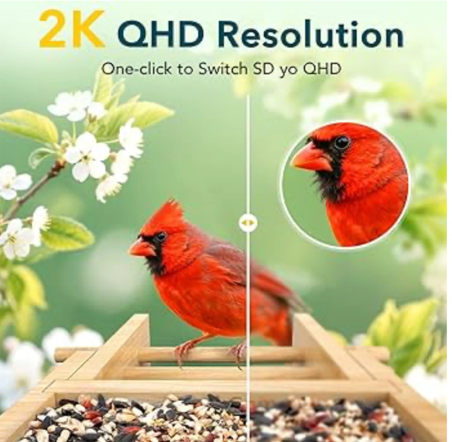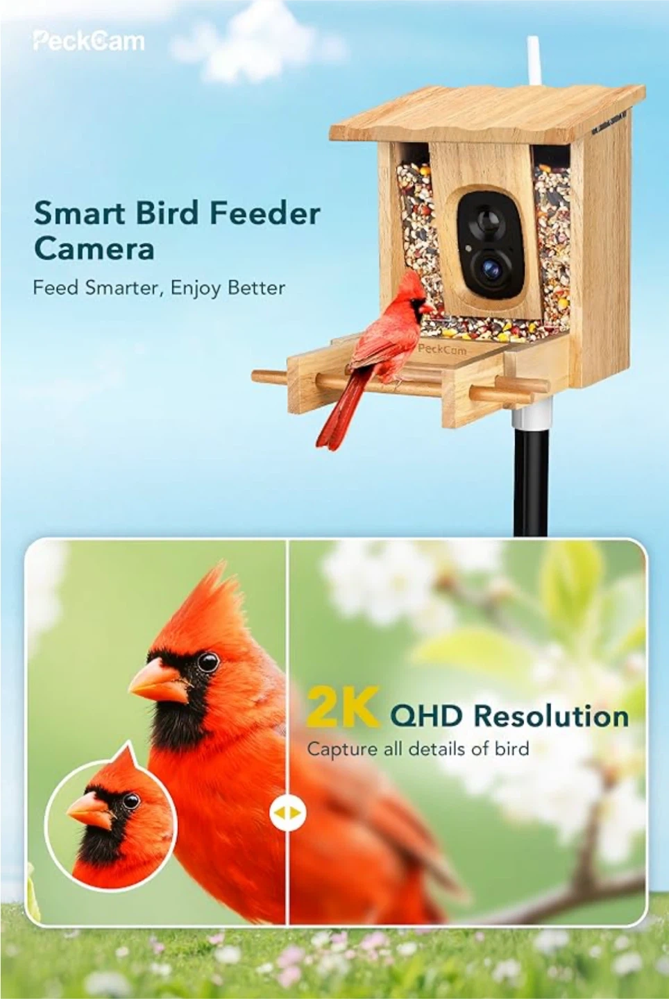 PeckCam Bird Feeder Camera with 2K QHD Resol