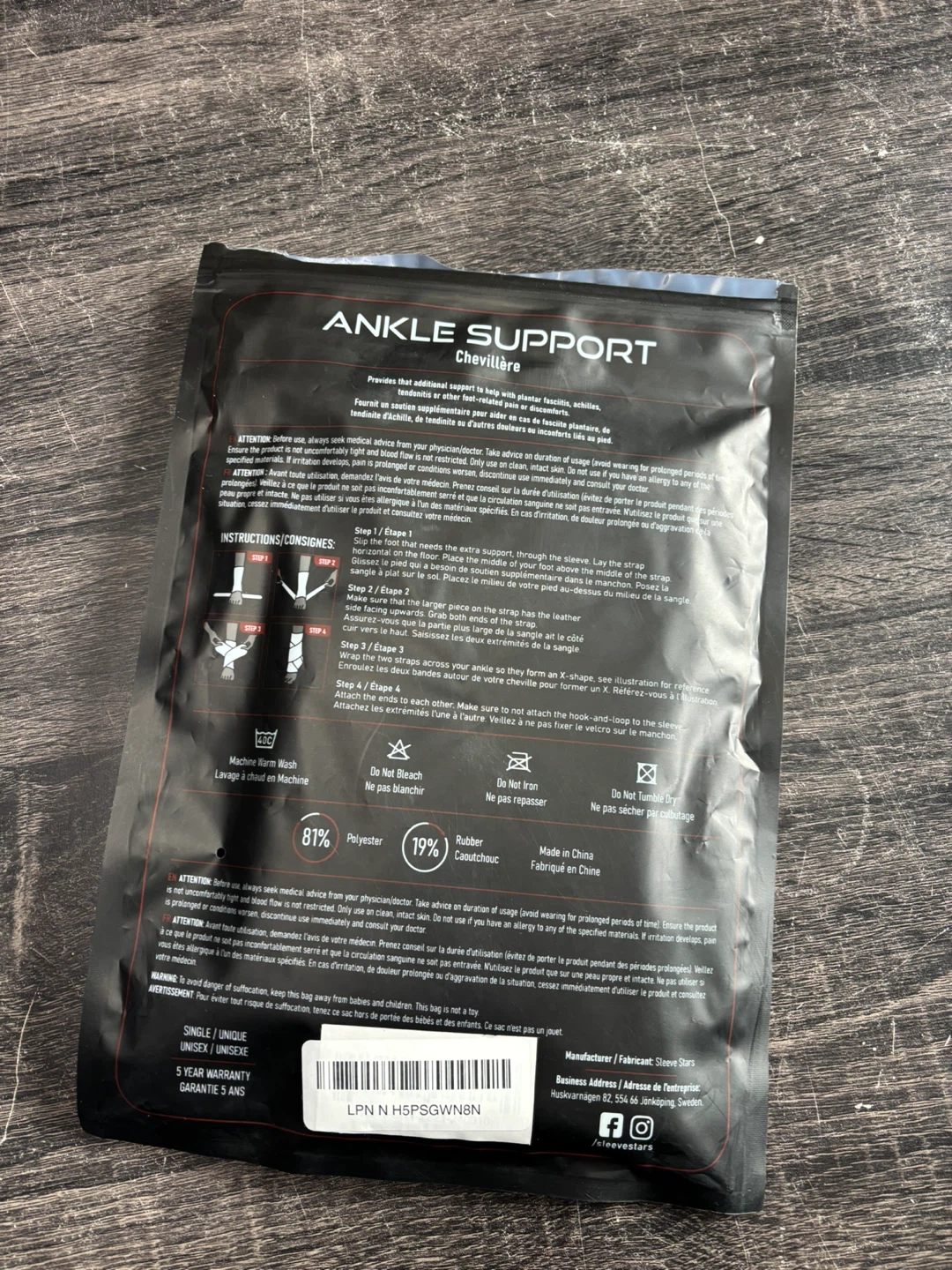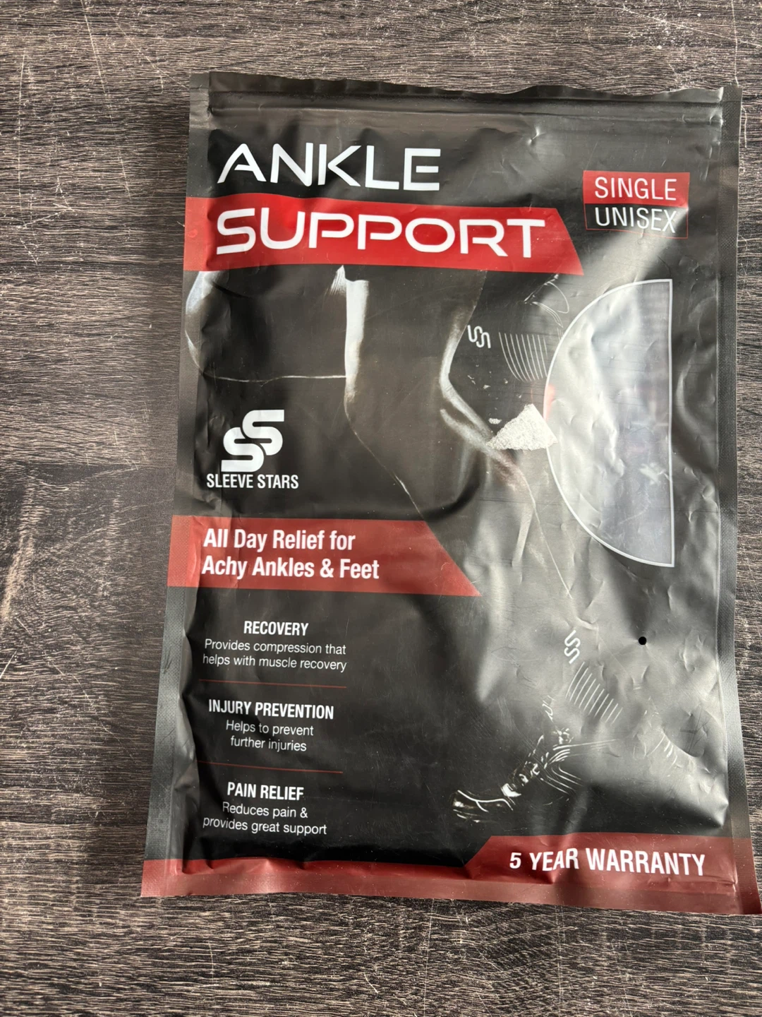 🔥This Sleeve Stars ankle support provides compression for achy ankles and feet. It's designed for recovery, injury prevention, and pain relief. Material is a blend of 81% Polyester and 19% Rubber.