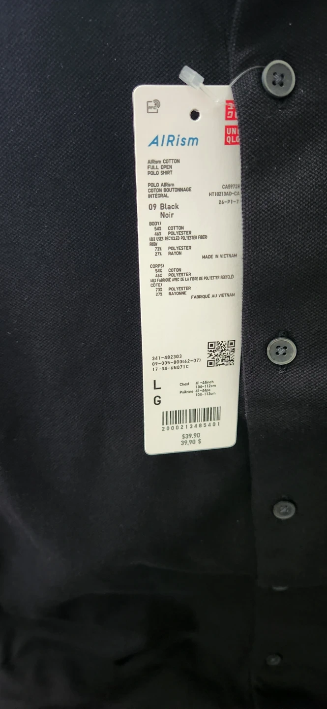UNIQLO AIRism Polo Shirt - Black - Size L