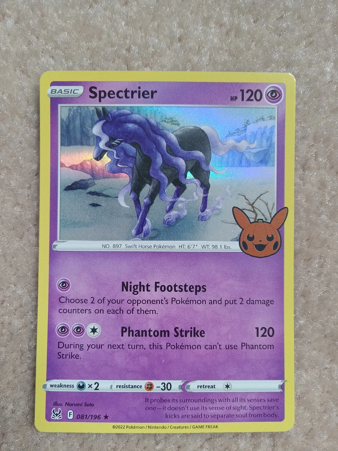 Buy & SellSpectrier Halloween Pokémon CardSpectrier Halloween Pokémon Card$5Spectrier Halloween Pokémon card in Near Mint condition.ConditionNewWHERE TO MEET570 Longworth AveView MapSELLERTyCentral150 reviews0 chats·0 favorites·6 viewsSEND CHAT TO SELLERHi Ty! I’m interested in your listing.Hi Ty! I’m interested in your listing.Get the Karrot app to chatSign In to chat
