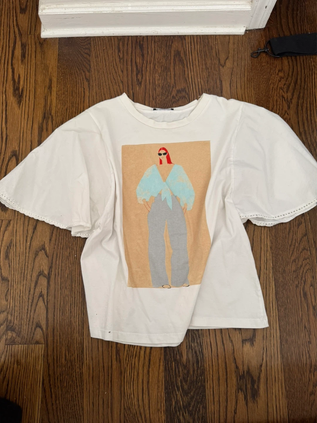 Buy & SellZara White Graphic T-Shirt Size MZara White Graphic T-Shirt Size M$5White graphic t-shirt from Zara. Features a printed design of a person. Made in Morocco. Size M.ConditionOkaySizeMBrandZaraWHERE TO MEET138 spring streetView MapSELLERverifiedAnnaSoHo1416 reviews0 chats·0 favorites·2 viewsSEND CHAT TO SELLERHi Anna! I’m interested in your listing.Hi Anna! I’m interested in your listing.Get the Karrot app to chatSign In to chat