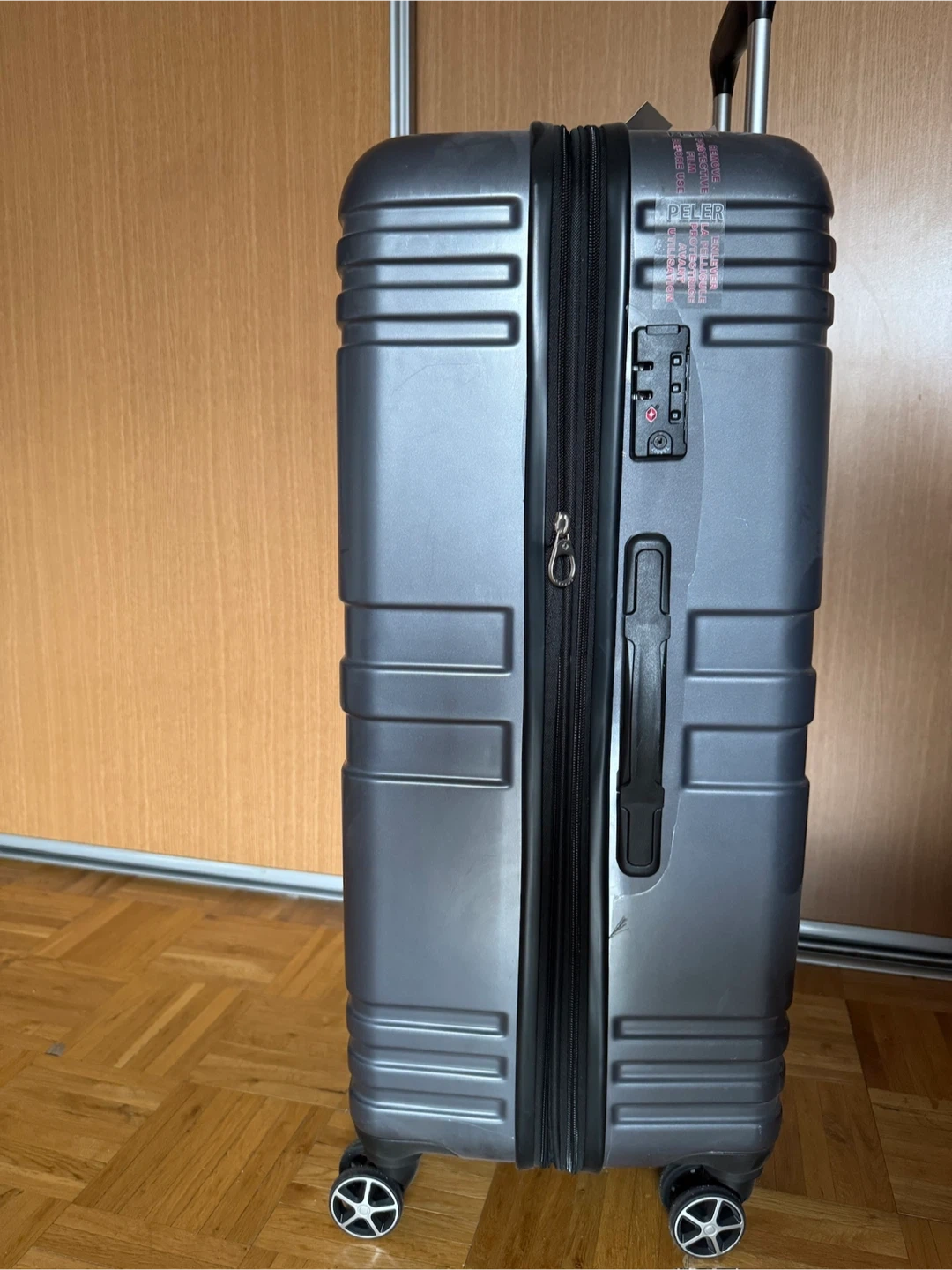 Samsonite spinner carry-on luggage. constructed of ABS/polycarbonate. Spinner carry-on dimensions are 21.5 x 14.5 x 8.8 inches. TSA lock included. Grey and red. Sold together or separately. Price is for each one