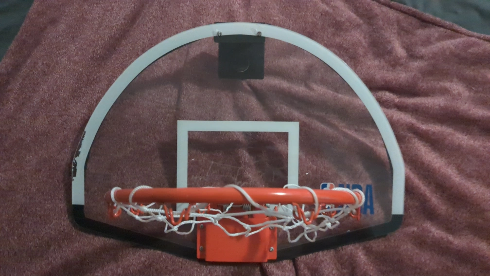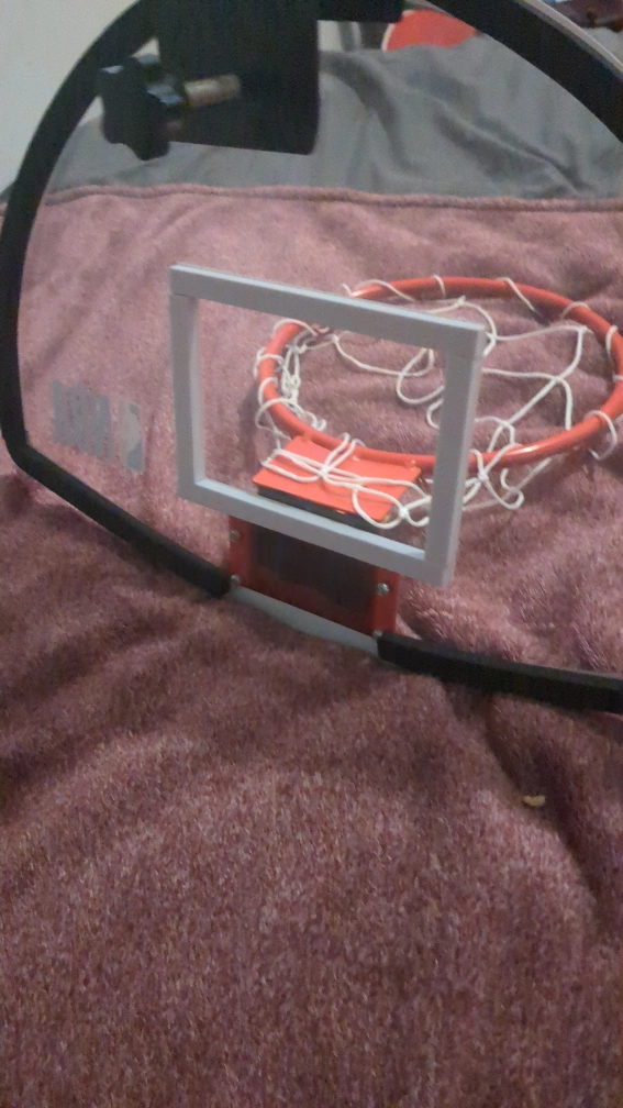 23Miniature basketball hoop. Great for a child's bedroom or playroom. Mounts to a wall plus the ball