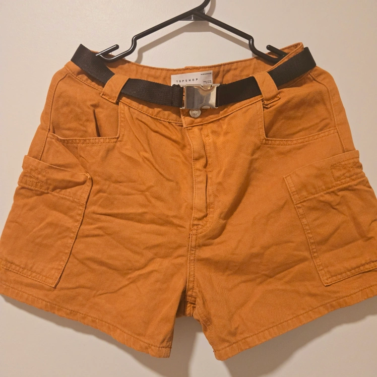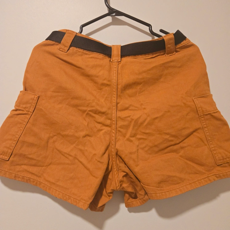 55Orange cargo shorts with a black belt. Two large cargo pockets on each side. Only wear one time size: US 8
