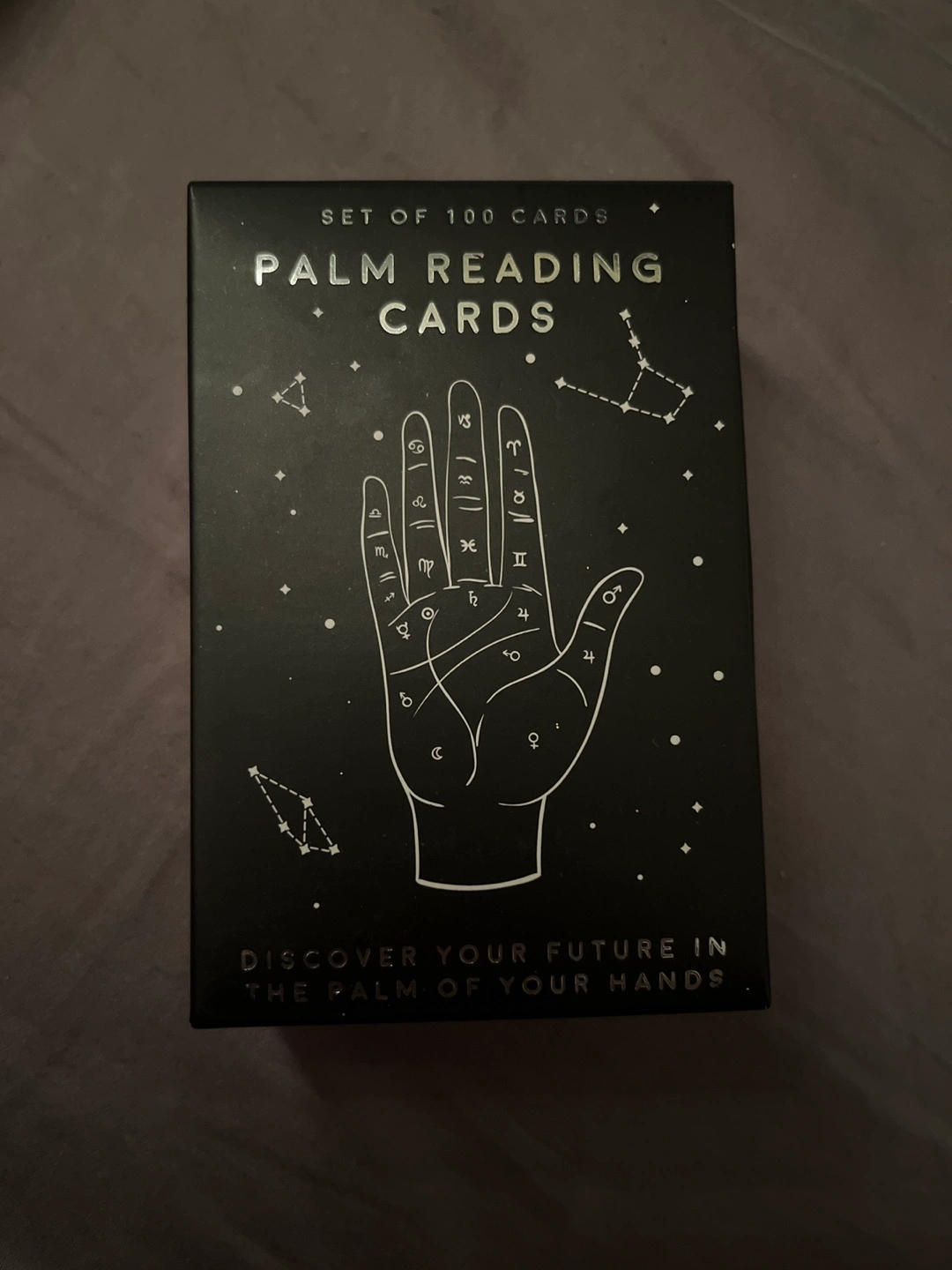 Set of 100 palm reading cards, opened to take a look at them but otherwise brand new. I got these for xmas but I won't really use them