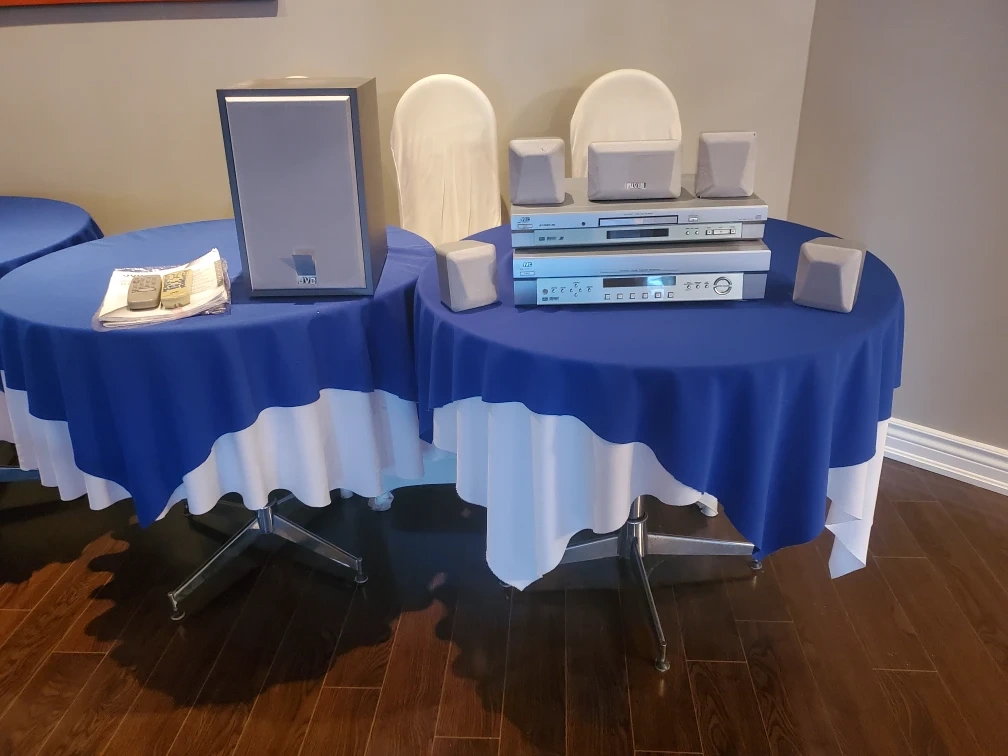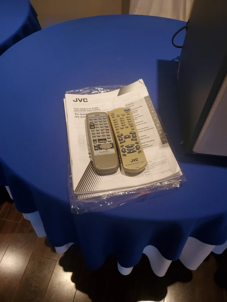 DVD player to watch movies, play music with home theater receiver. Comes with 5 speakers for sound. Remotes included.