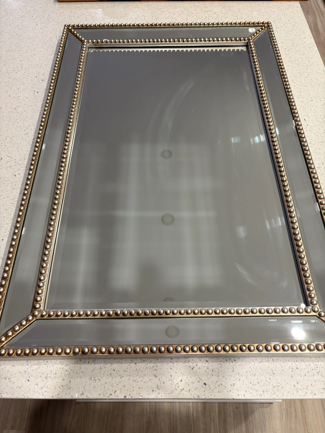 Rectangular Mirror with Beaded Frame and Antique Brass Finish
