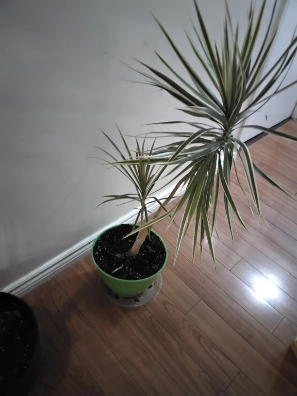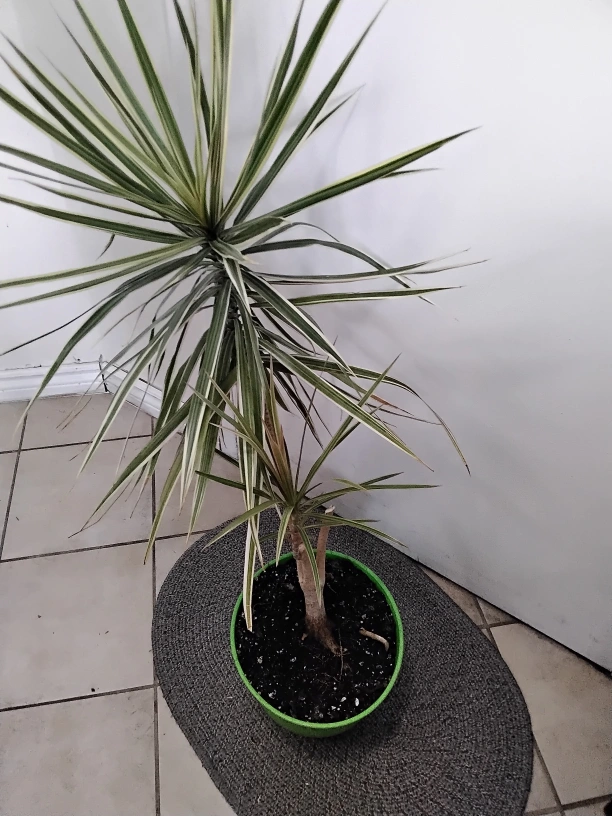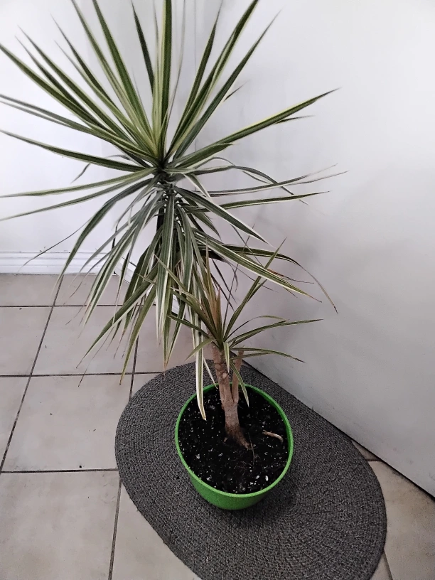 Large Dracaena Marginata plant in a green pot. The plant is in a good condition. it has many benefits for indoor spaces as air purification,humidity control.It surives under any conditions.it styles up your home.