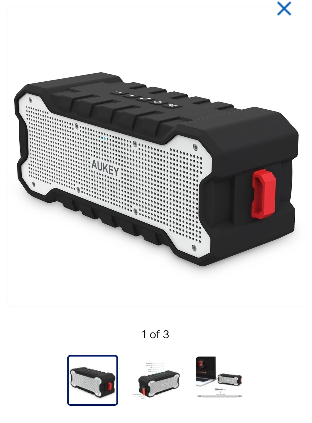 Aukey Brand Bluetooth speaker sound tank wireless outdoor speaker with 30 hours playtime. Enhanced base and water resistant shell protects against extreme weather outside. Barley used. But I must say the sound quality is excellent!!! Retails on Best Buy for around 50 before tax. Asking 35 and including a brand new USB cord that did not come with the device. Cash only.