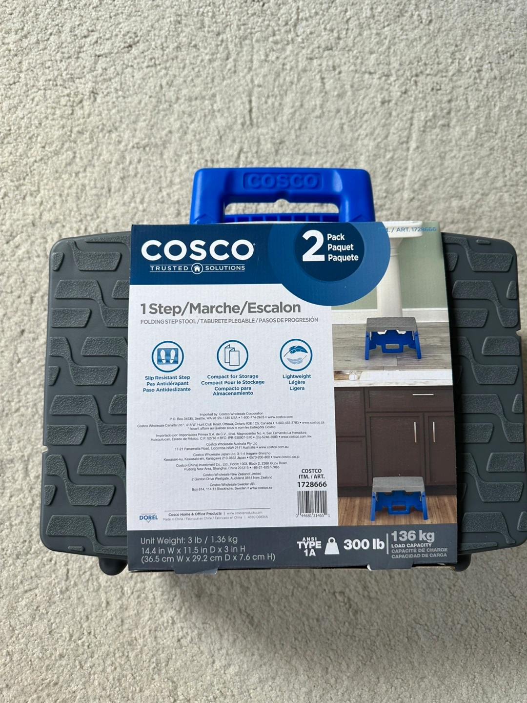 Two-pack of folding stools. Compact for storage. Lightweight and slip-resistant. 300 lb load capacity.