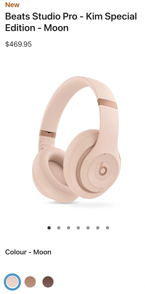 Up for sale are Beats Studio Pro headphones (new, open box), Moon colour (Beats x Kim Kardashian's special edition collaboration).