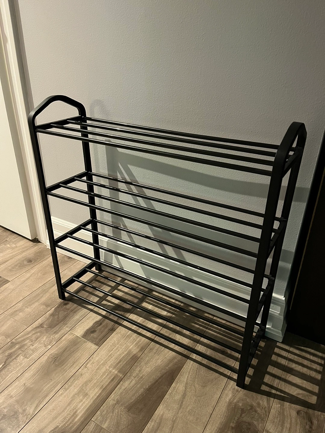 FREE: 3 tier black shoe rack, - 25” wide, 25” tall, 8” deep