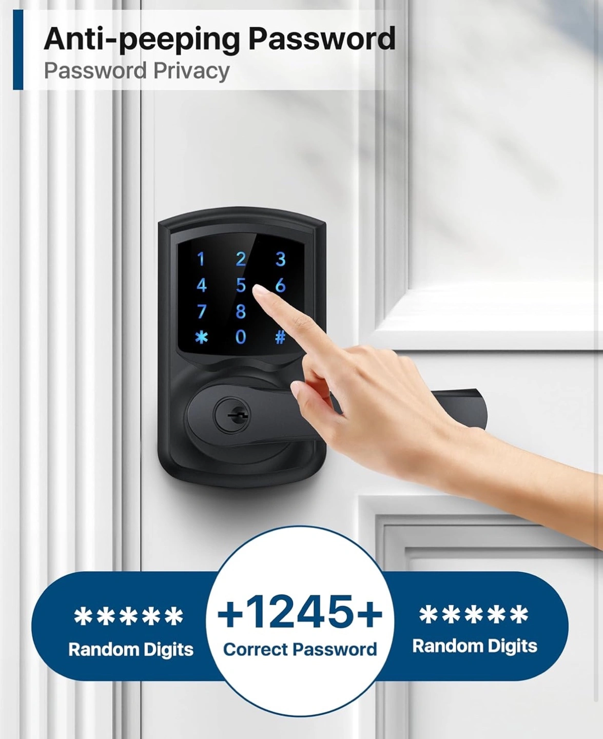 HIDALIFE Keyless Entry Door Lock, Keypad Door Lock with Handle, Touchscreen Electronic Door Lock, Auto-Locking, Anti-peep Password, Easy to Install for Front Door, Home, Appartment, Office(Black)